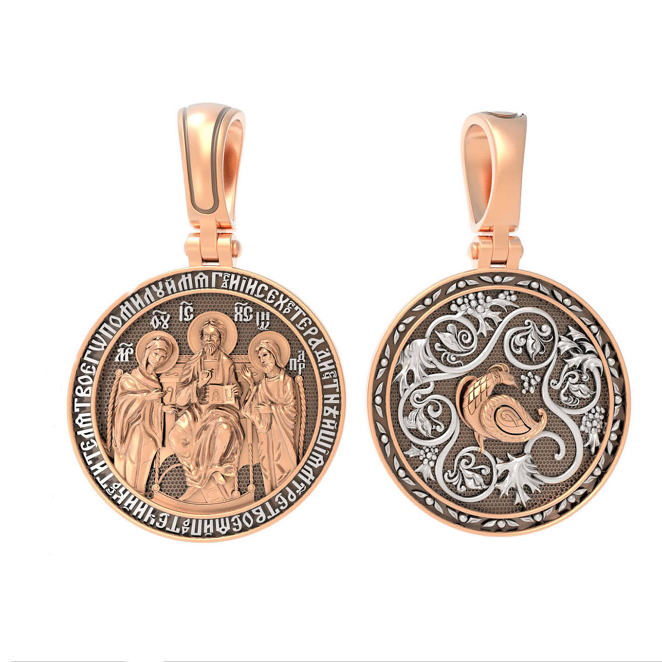 На лицевой стороне образка изображена икона Иисуса Христа Деисус. Он представлен в образе Господа Вседержителя, восседающего на престоле. В его руках — Книга Судеб всего человечества. С двух сторон ему предстоят Пресвятая Богородица и пророк Иоанн Предтеча, Креститель Господень. Первыми помощниками и заступниками человека в его земной жизни являются Матерь Божия и Иоанн Креститель. Поэтому каждый верующий в первую очередь к ним обращает свои молитвы с просьбой о духовной помощи. Такая молитва-прошение помещена на образке: «Господи Иисусе Христе, ради честнейшия Матери Твоея и Предтечи и Крестителя Твоего, помилуй мя».