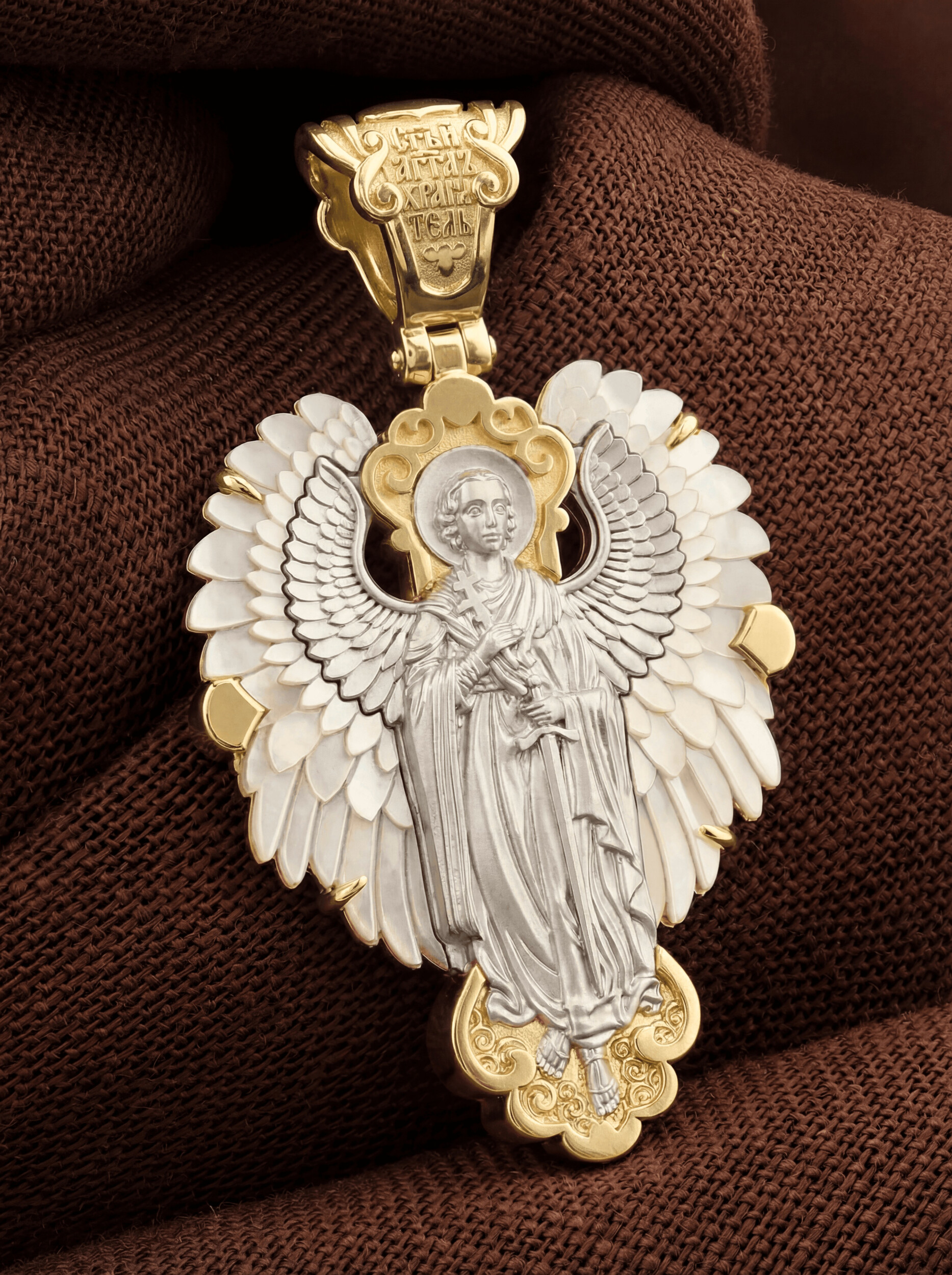 На оборотной стороне образка изображен Святой Ангел-Хранитель в виде прекрасного юноши держащего в правой руке крест, а в левой — мечь. Ангел-Хранитель — это Ангел приставляемый Богом к человеку при крещении для охраны и помощи в добрых делах. Он невидимо находится при человеке на протяжении всей его жизни, если человек сохраняет в себе любовь к Богу и истинную веру перед Ним. Ангел-Xранитель делают для нас все, что служит к истинному нашему благу и спасению. Невидимо пребывая при нас постоянно, он, руководствуя нас ко спасению, наставляет нас на все доброе и полезное, возносит наши молитвы к Богу, охраняют и защищают нас от врагов видимых и невидимых и ходатайствует за нас пред Богом.