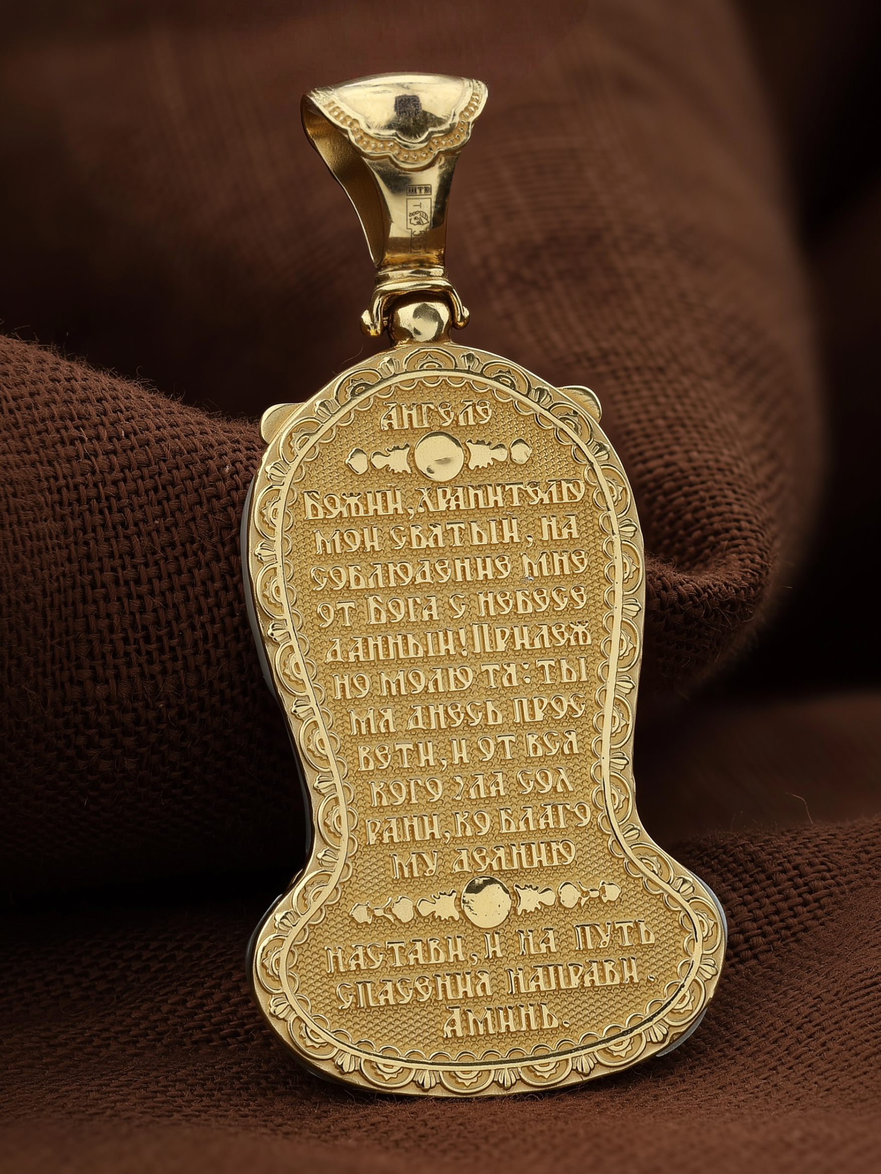 На оборотной стороне образка написана молитва: «Ангеле Божий, хранителю мой святый, на соблюдение мне от Бога с небесе данный! Прилежно молю тя: ты мя днесь просвети, и от всякаго зла сохрани, ко благому деянию настави, и на путь спасения направи. Аминь»