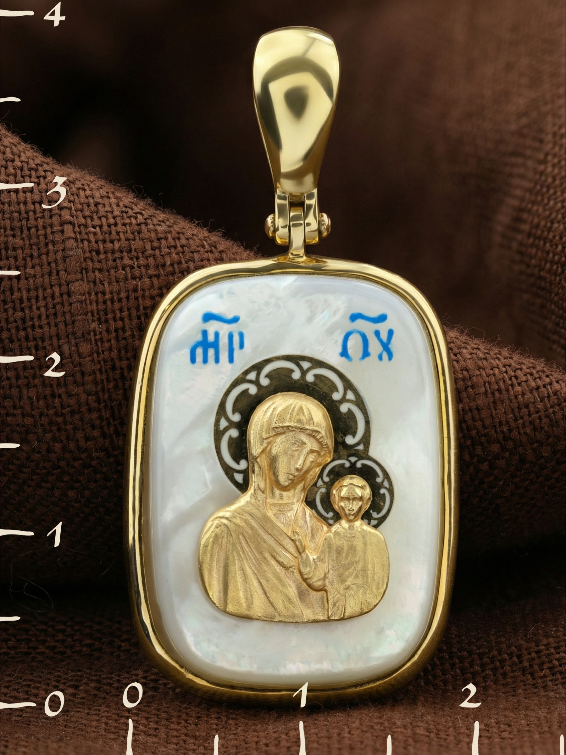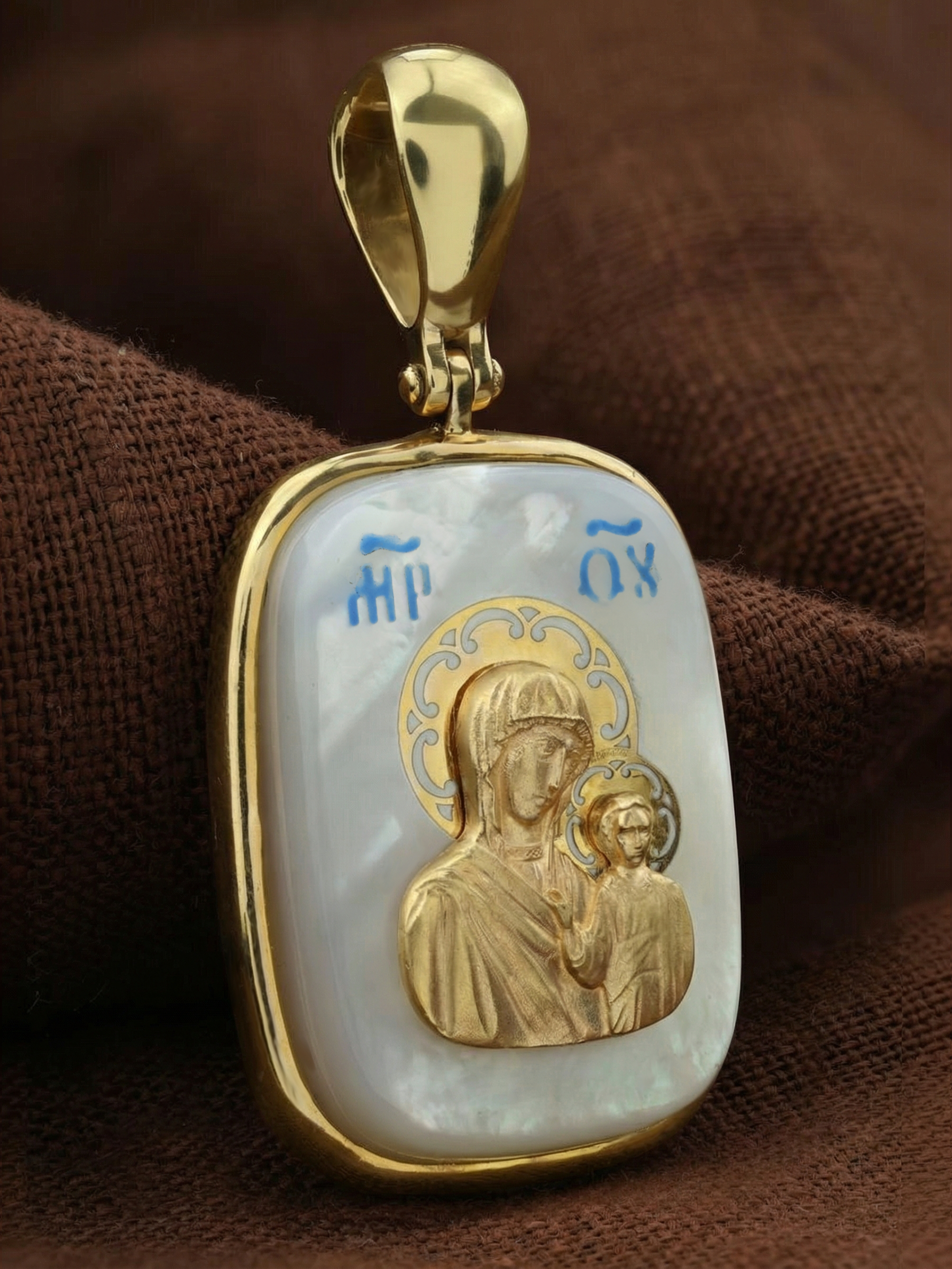 На лицевой стороне образка изображена Казанская икона Божией Матери. Пресвятая Богородица — милосердная заступница, просительница за нас перед Богом. Ее благодатная помощь изливается на нас по молитвам у ее чудотворных икон. Казанская икона явилась в 1579 году в Казани, вскоре после взятия Казанского царства у татар Иоанном Грозным. Этот образ Богородицы не раз сопровождал русский народ в бедствиях. Икона Божией Матери Казанская вдохновляла русских ратников в период Смутного времени при освобождении Москвы от поляков. Перед Казанской иконой в 1709 году, накануне Полтавской победы, император Петр I молился о даровании победы русскому войску. В 1812 году накануне отъезда в действующую армию перед чудотворной иконой Божией Матери молился князь Михаил Кутузов. Несмотря на массированную атеистическую пропаганду и торжество безбожия, воцарившегося в России после октября 1917 года, многие православные именно с молитвами, обращенными к Казанской иконе Божией Матери, связывают и победы в годы Великой Отечественной войны. Не только государственным мужам и дружинам указывала путь икона — по доброй традиции именно этой иконой благословляют на брак молодых родители, длинным списком чудес сопровождается этот образ Богоматери — один из самых любимых на Руси. Существует множество древних списков с этой удивительной иконы.