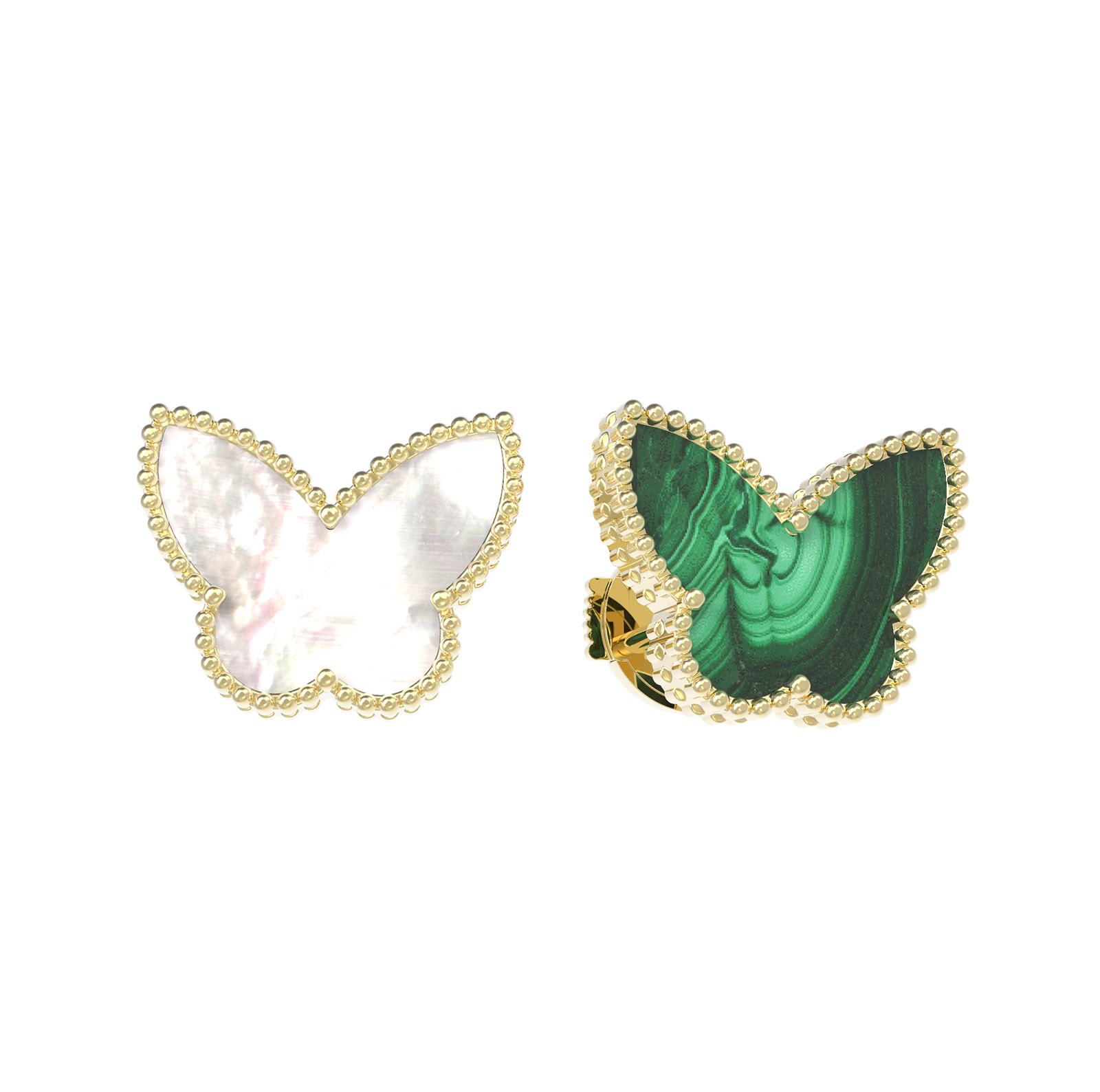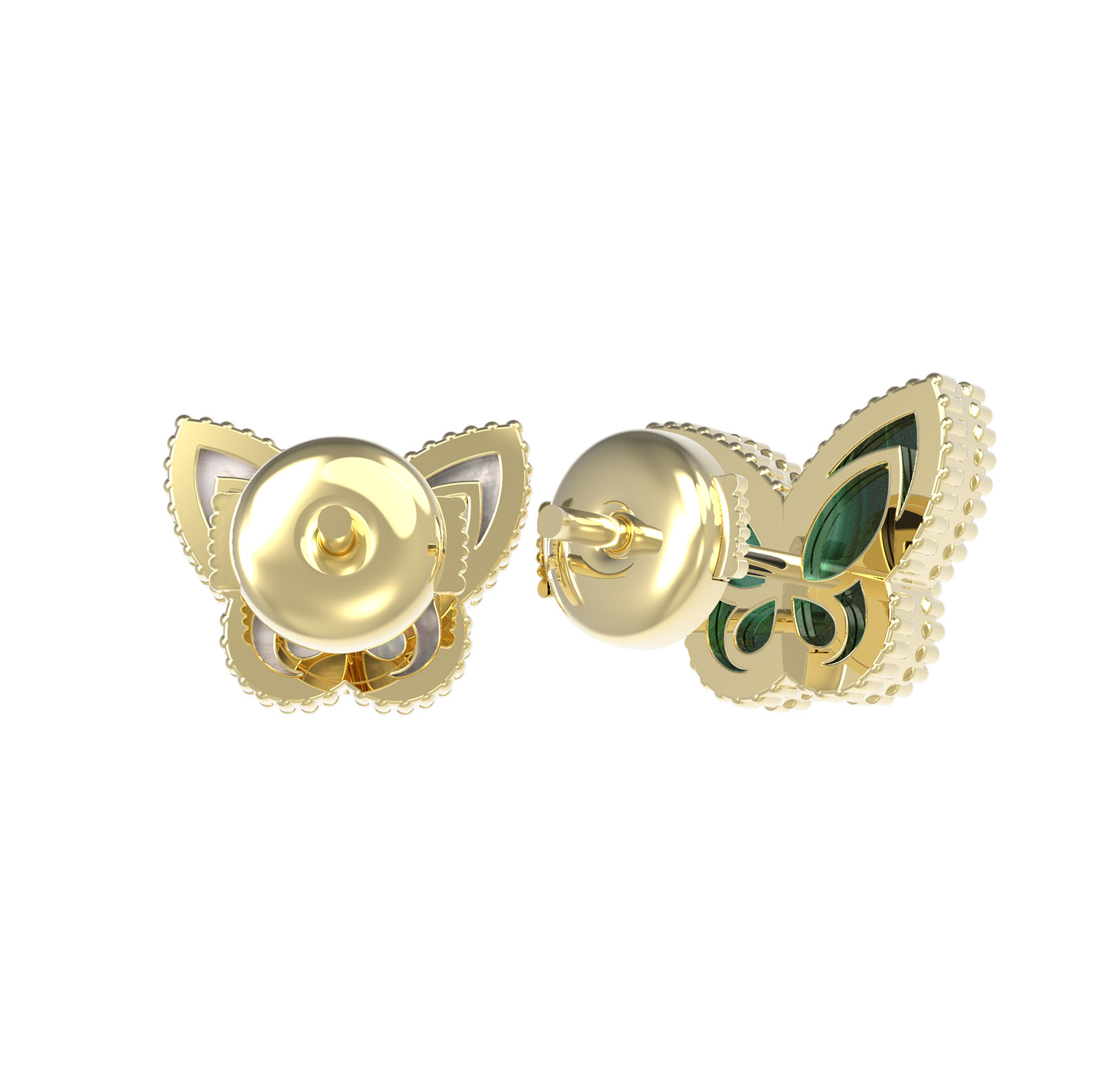 Серьги из лимонного золота c малахитом и перламутром