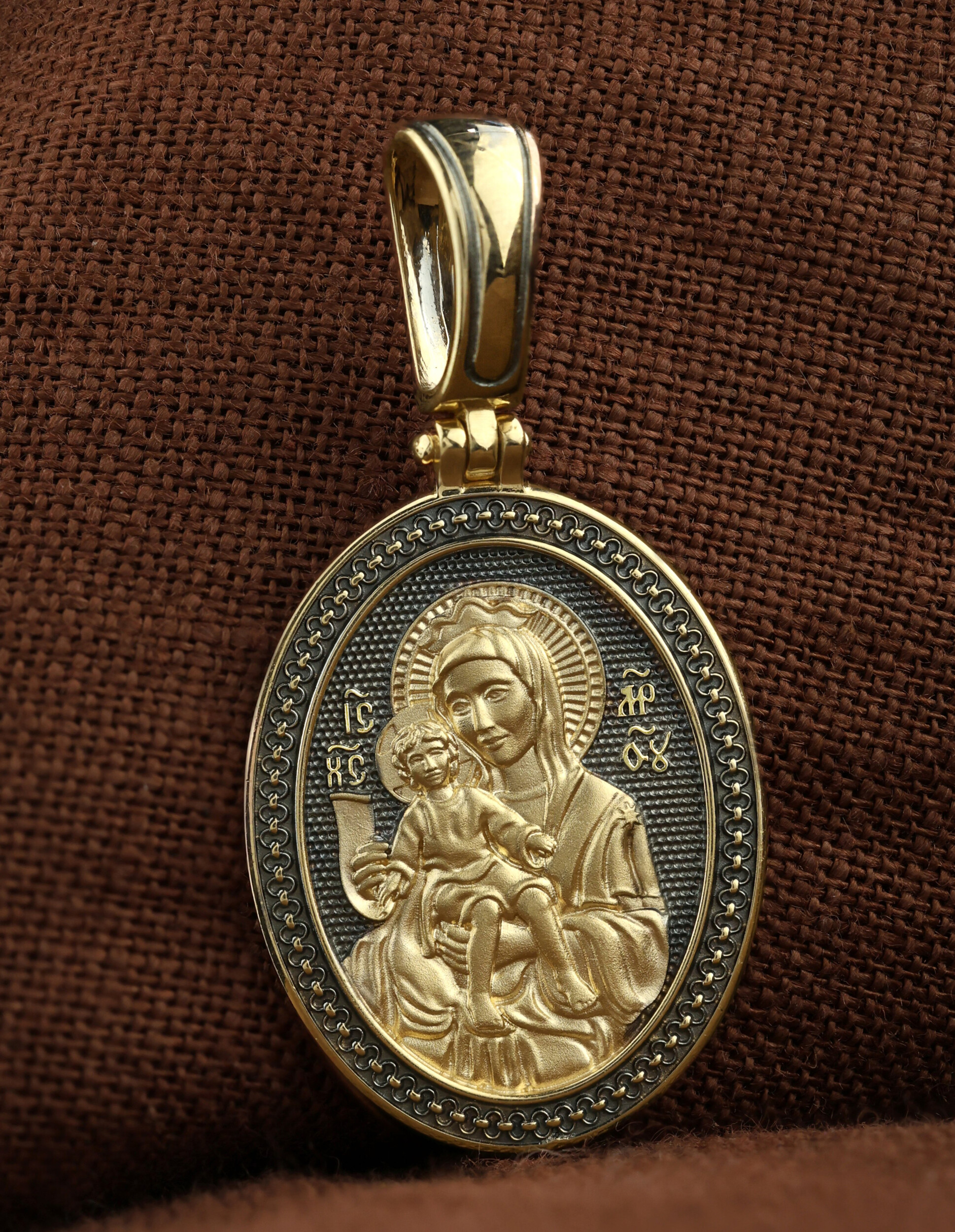 Лицевую сторону возглавляет икона Божией Матери «Достойно Есть» или «Милующая». Икона стала одной из главных икон Богородицы, которой молятся о прощении грехов, в том числе и смертных, и об исцелении душевных и физических недугов, сопровождающих эти грехи.