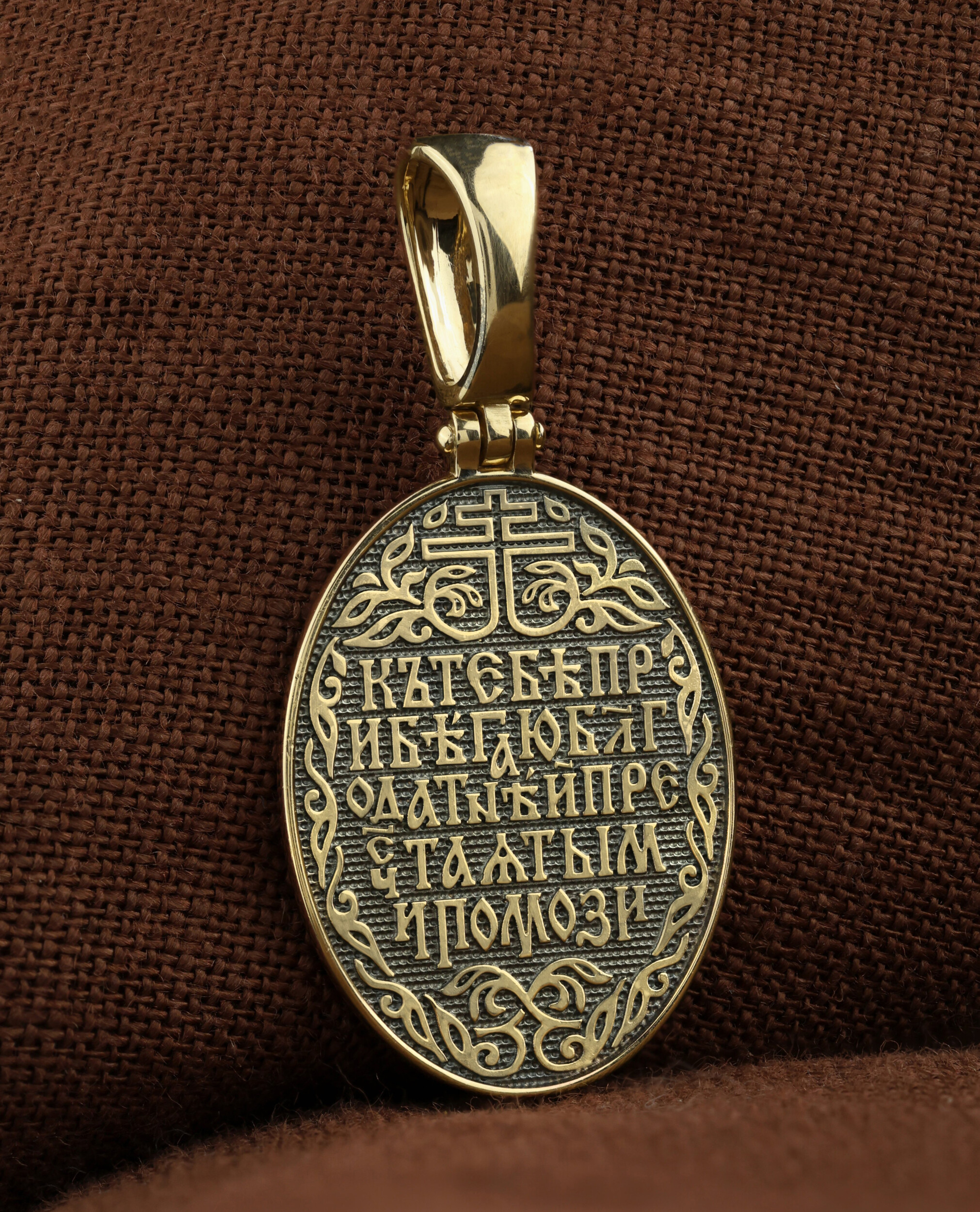 На обороте образка написана молитва:«Ныне к Тебе прибегаю, Пречистая Дево, спаси мя мольбами Твоими».