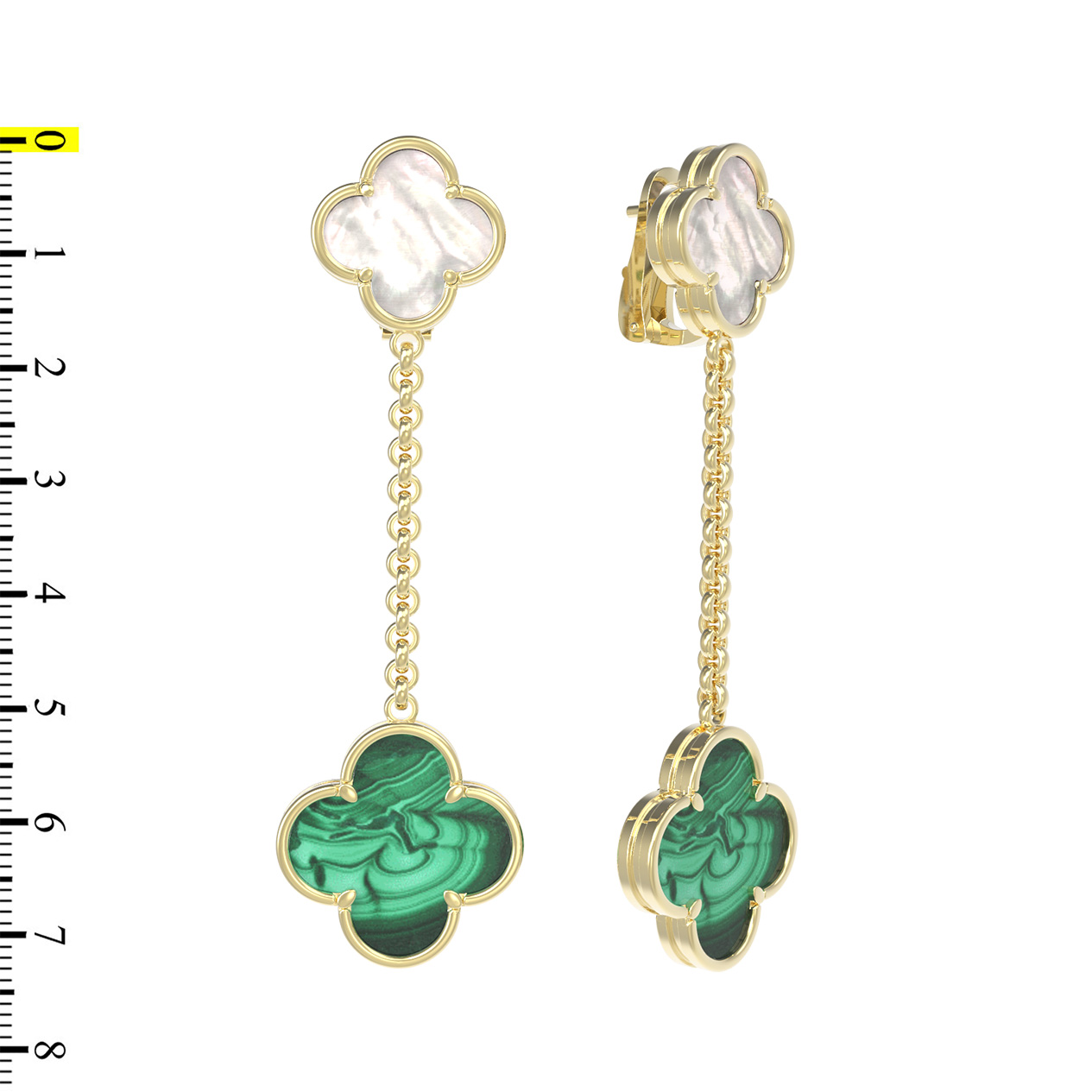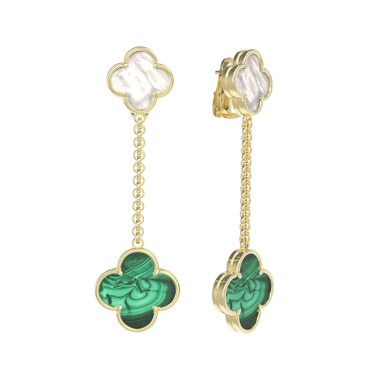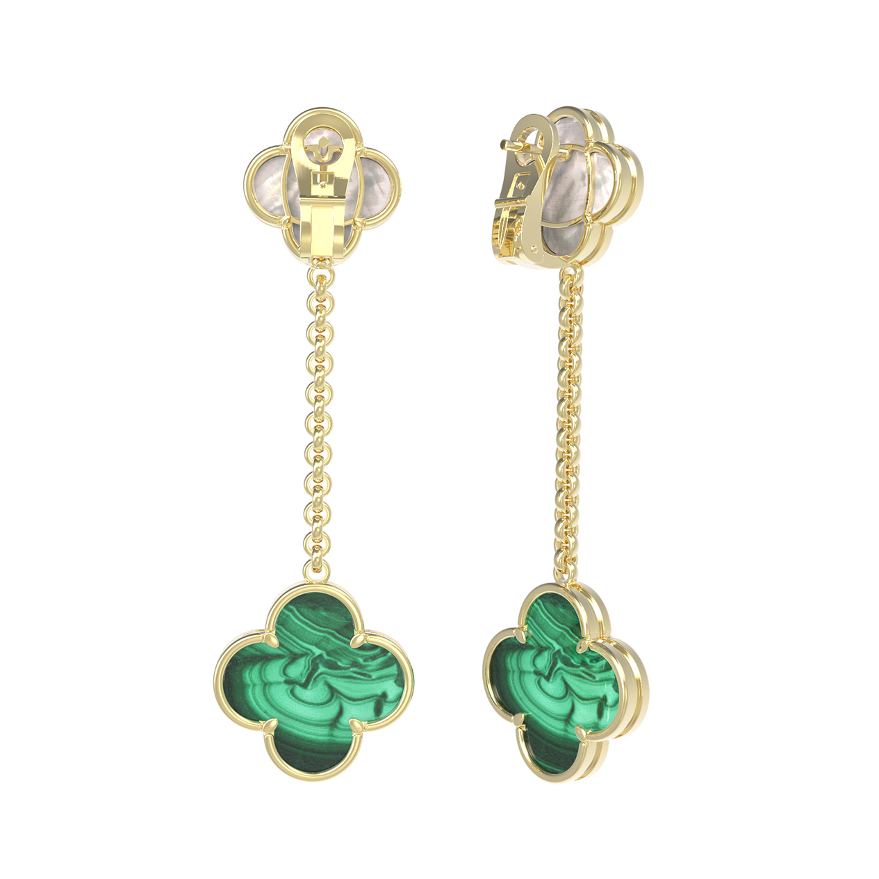 Серьги из лимонного золота c малахитом и перламутром