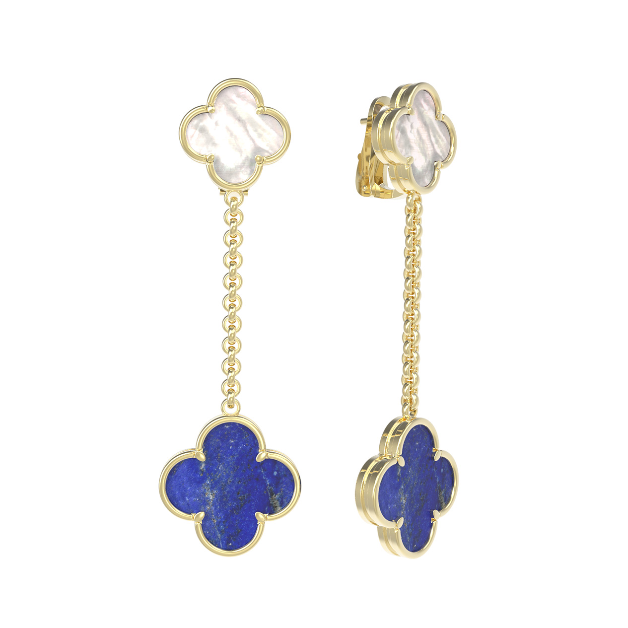 Серьги из лимонного золота c лазуритом и перламутром