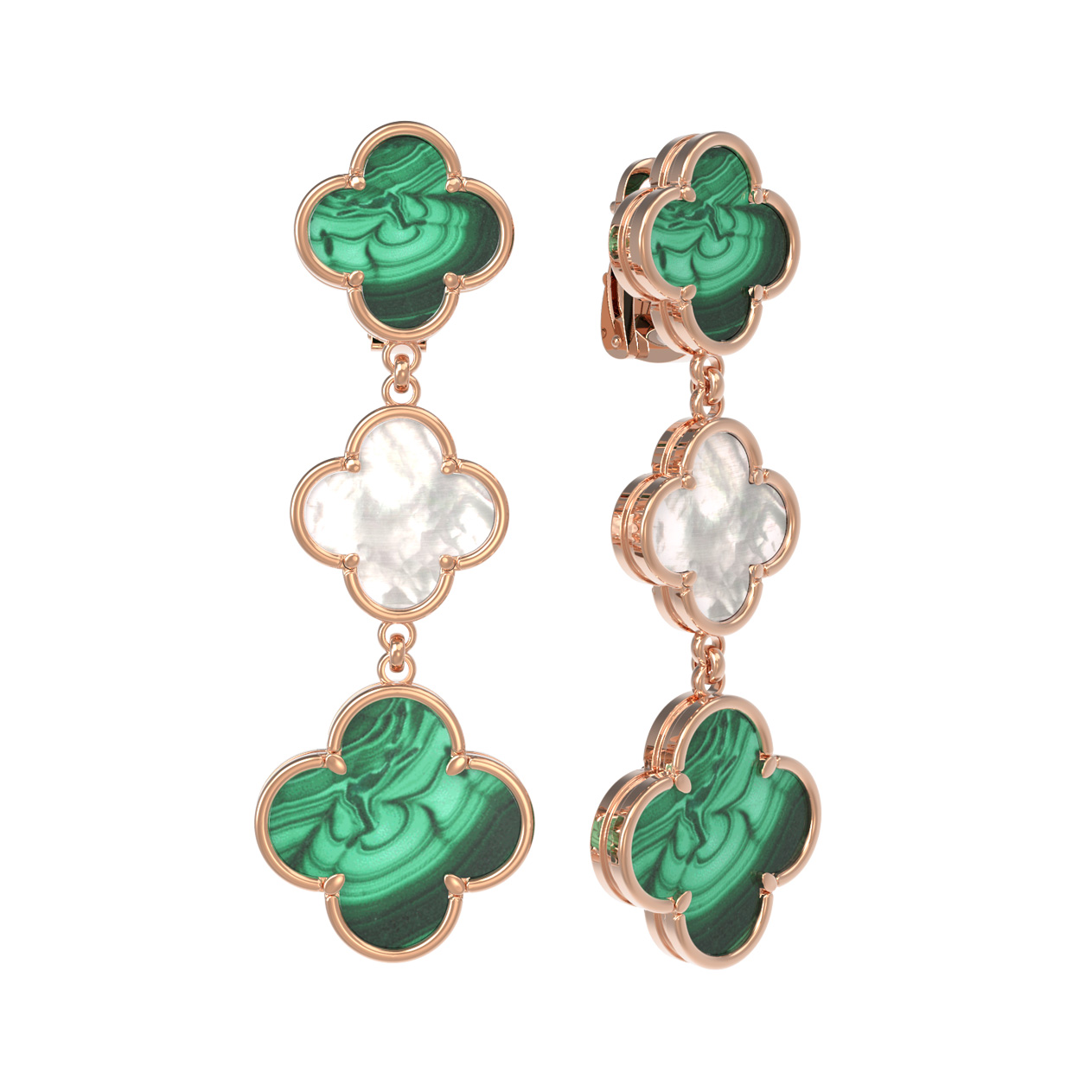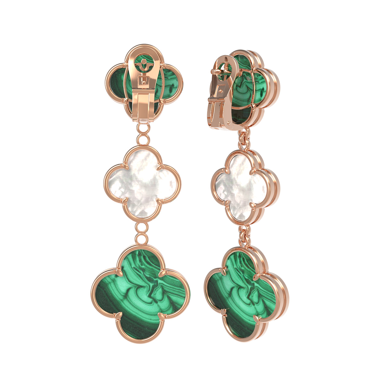 Серьги из золота c малахитом и перламутром