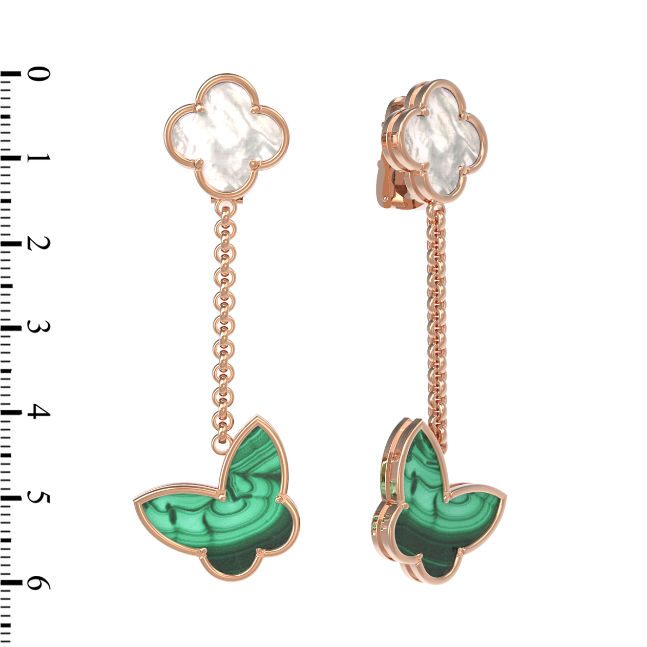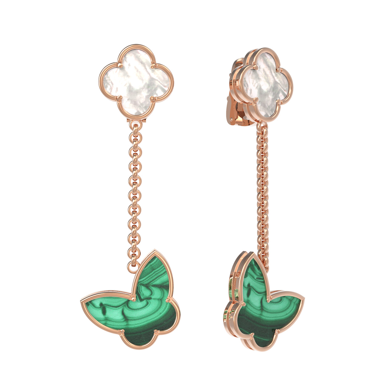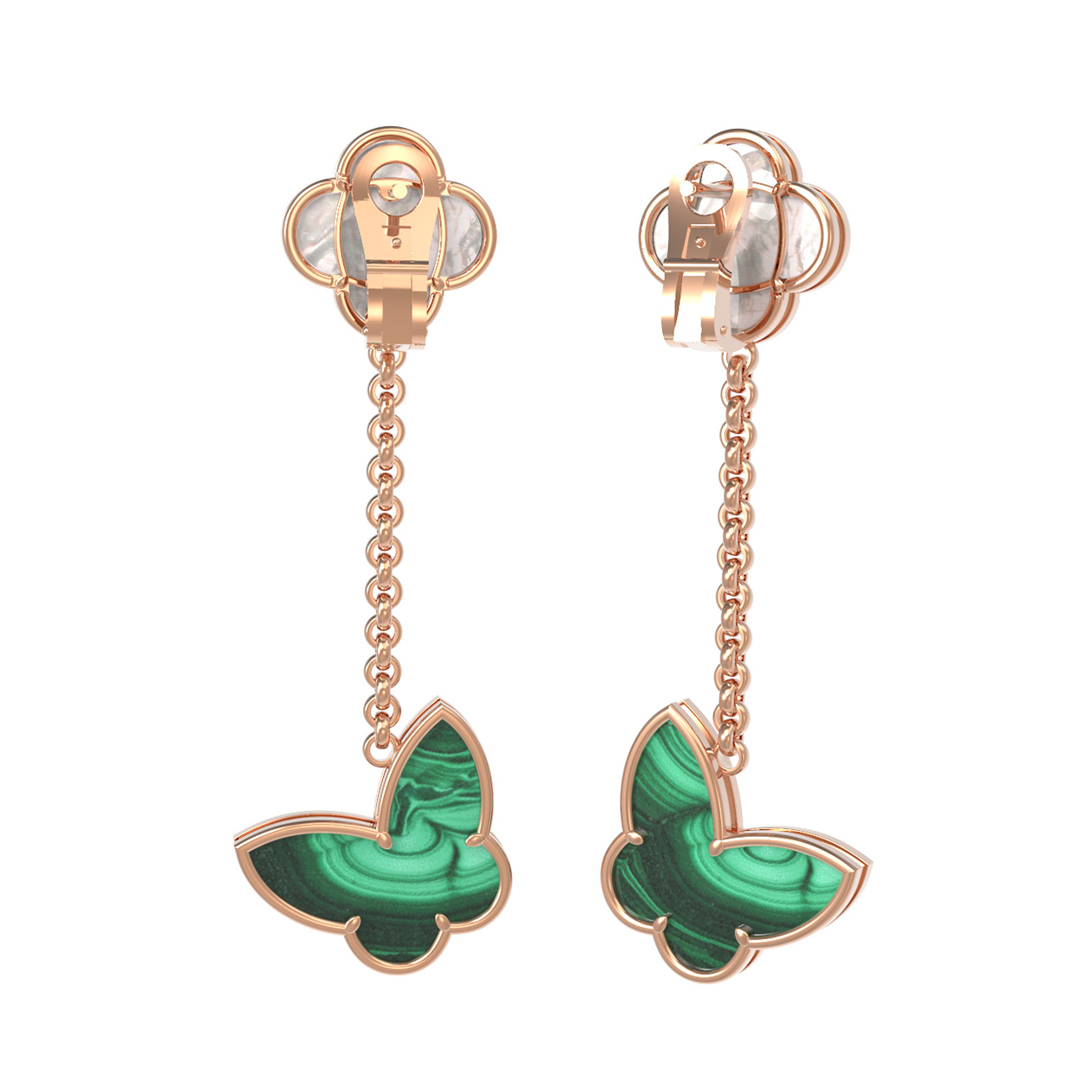 Серьги из золота c малахитом и перламутром