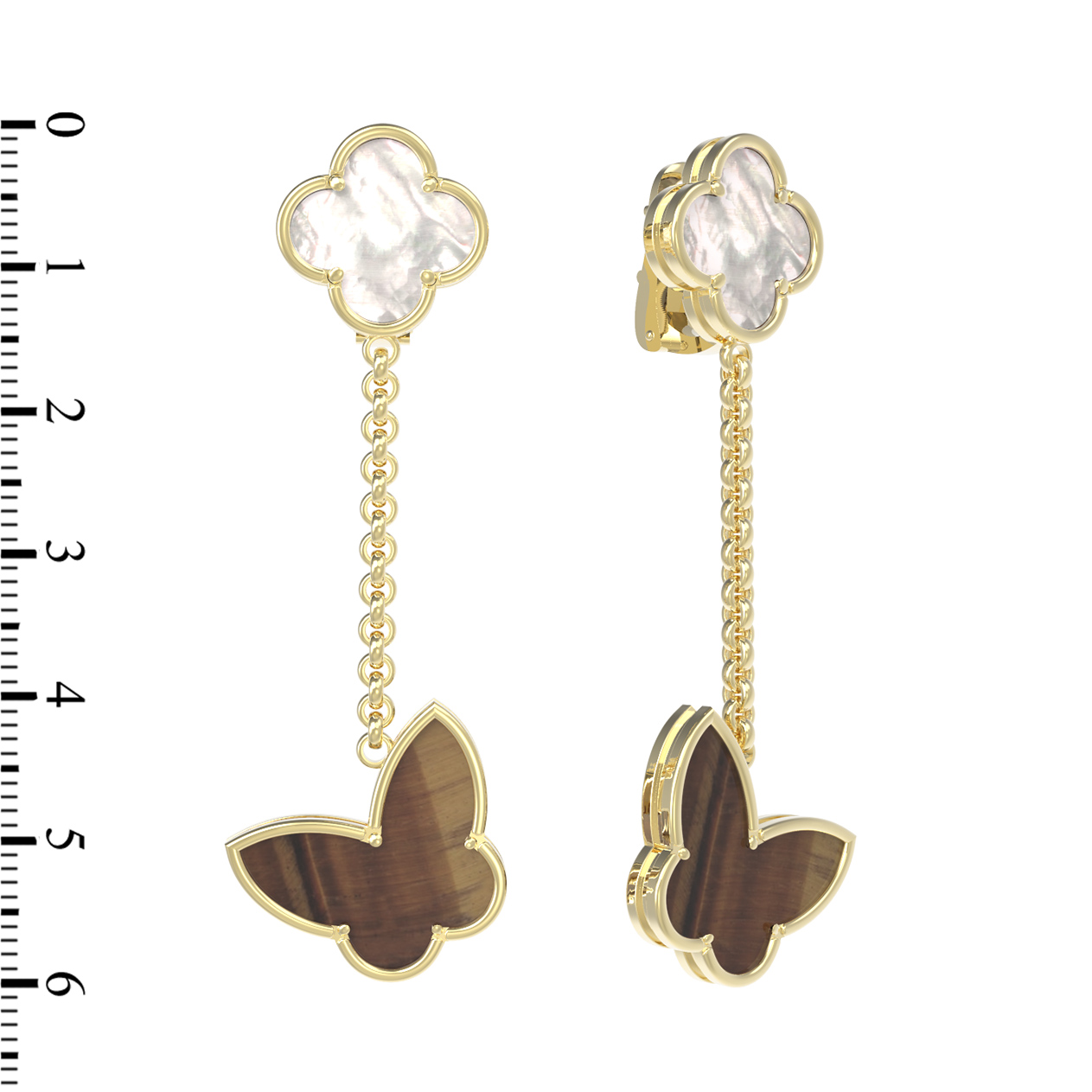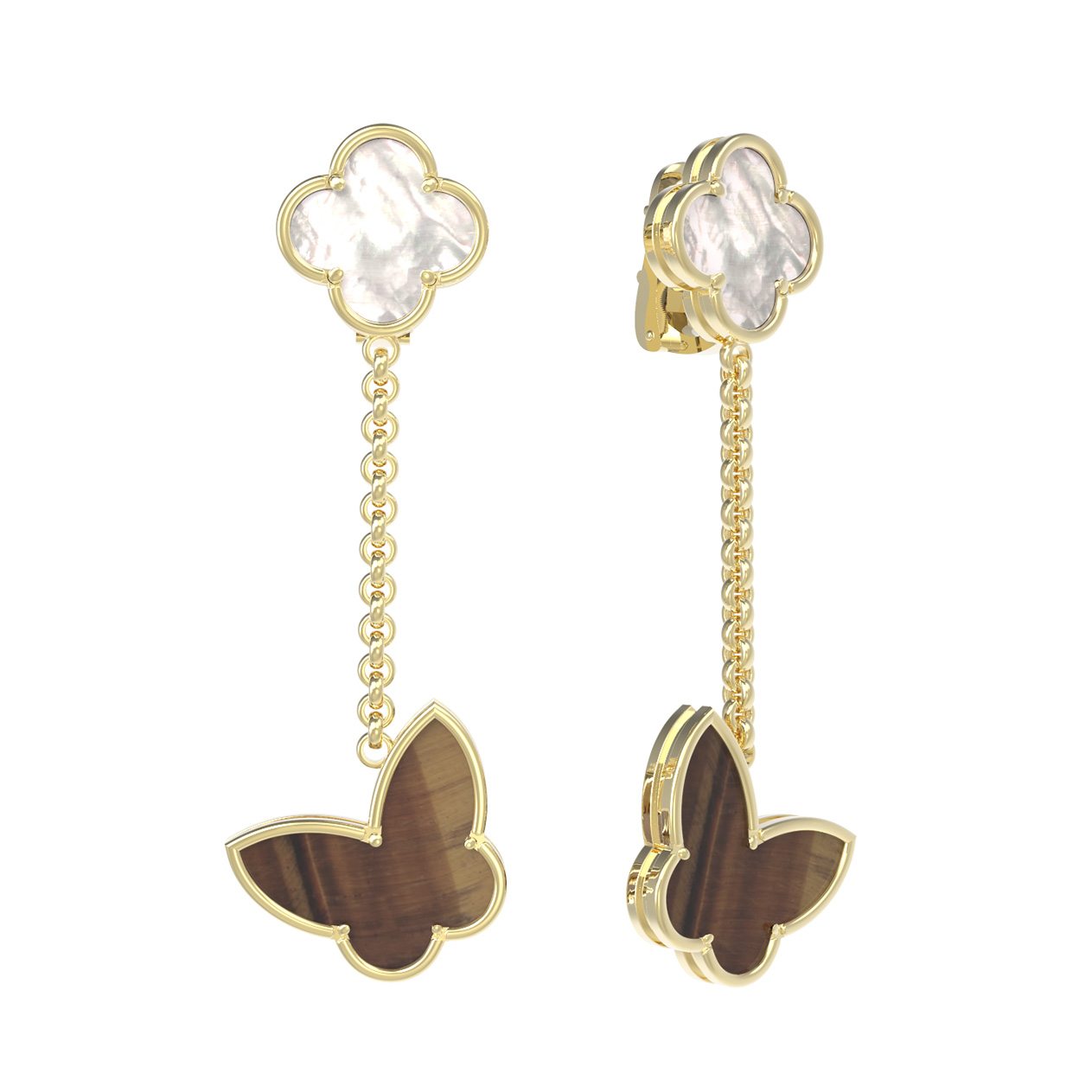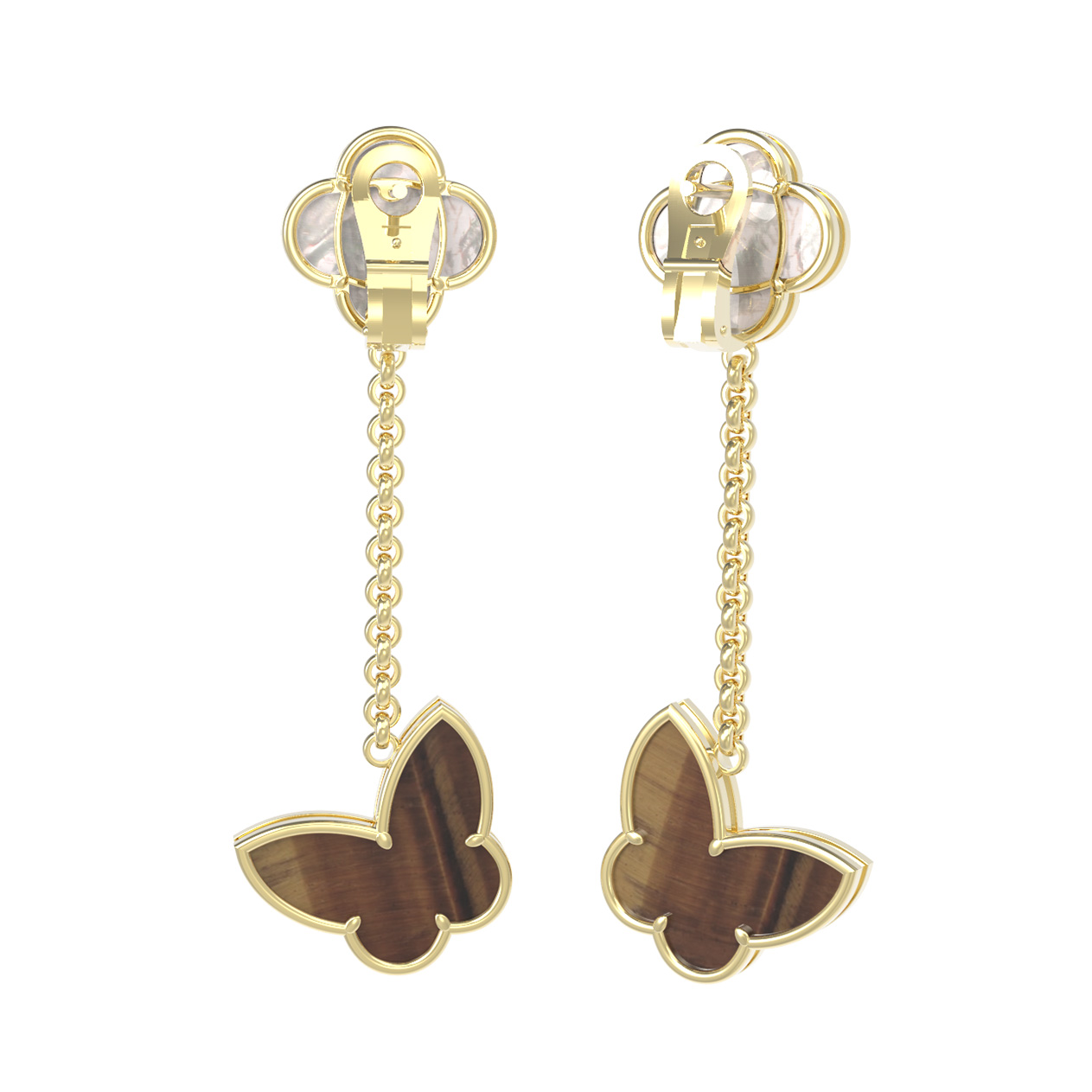 Серьги из лимонного золота c тигровым глазом и перламутром