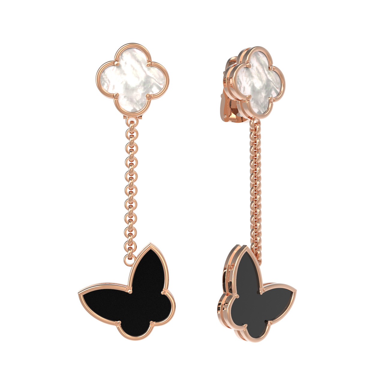 Серьги из золота c ониксом и перламутром