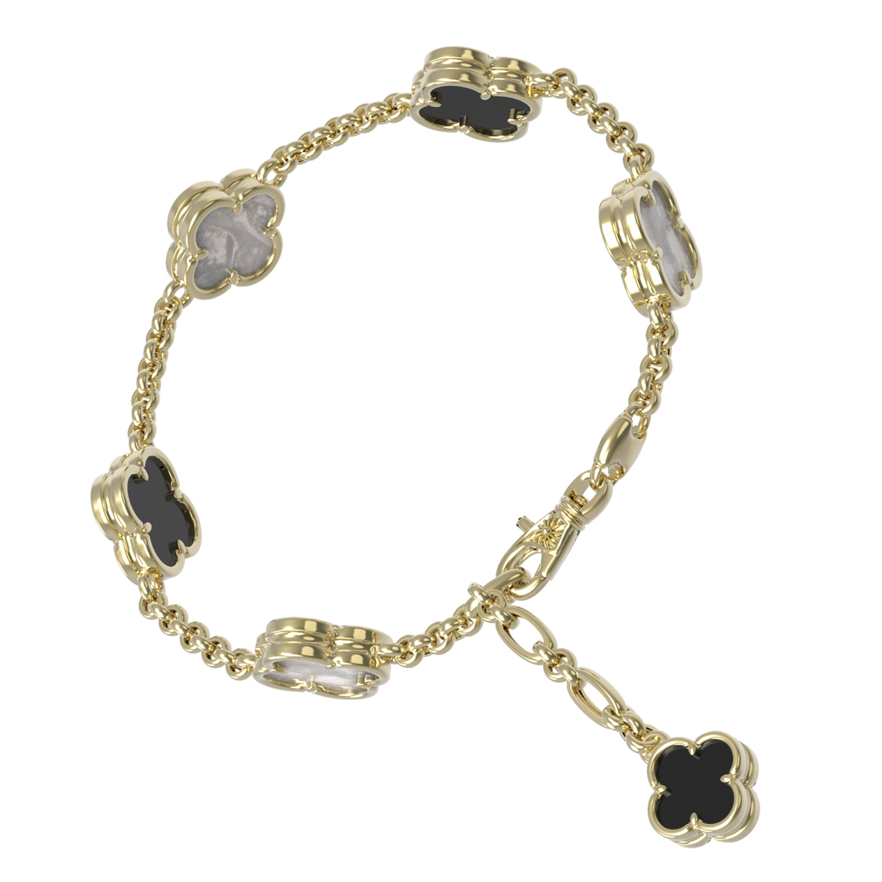 Браслет из лимонного золота c ониксом и перламутром