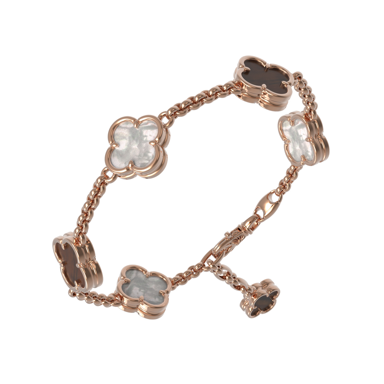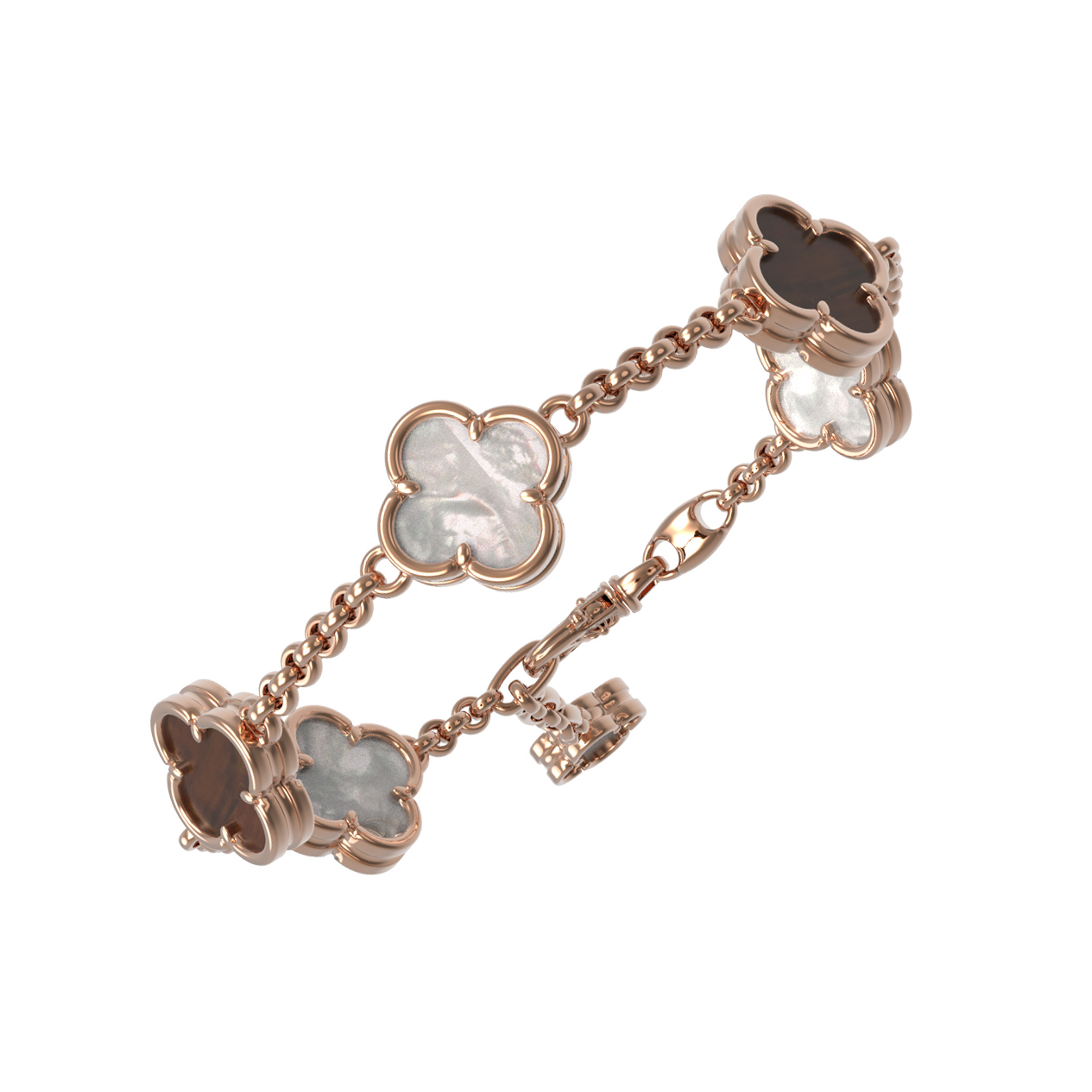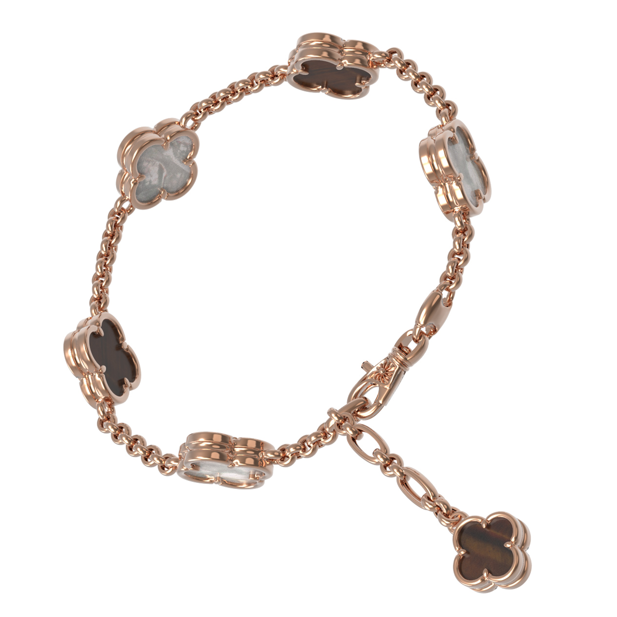 Браслет из золота c тигровым глазом и перламутром