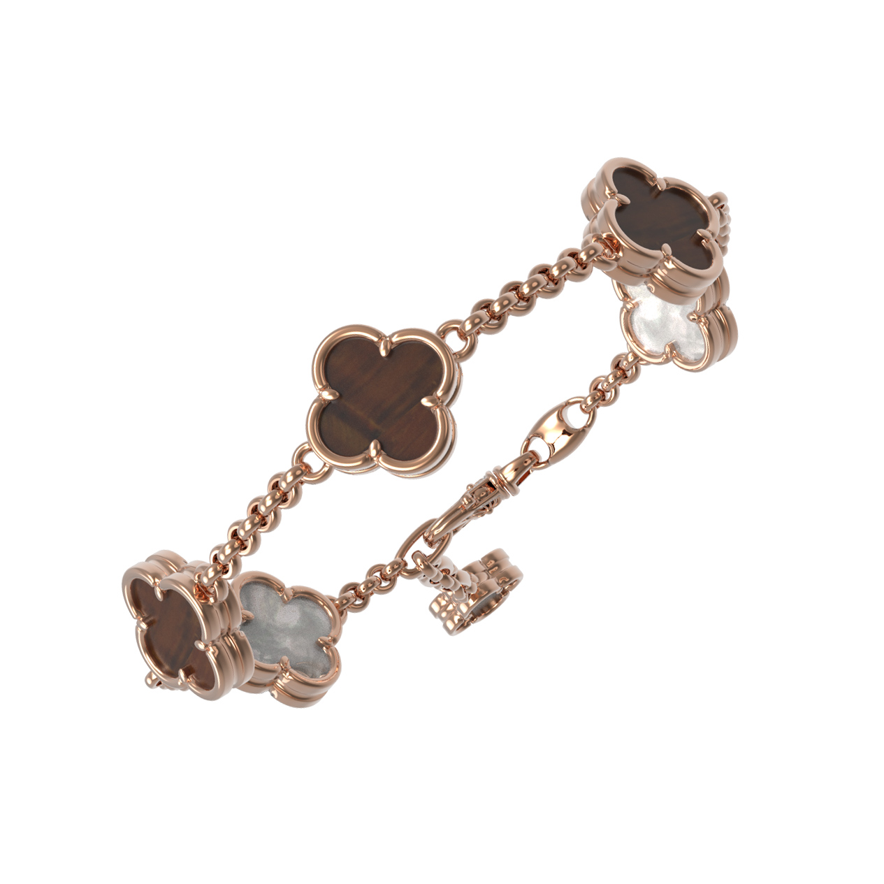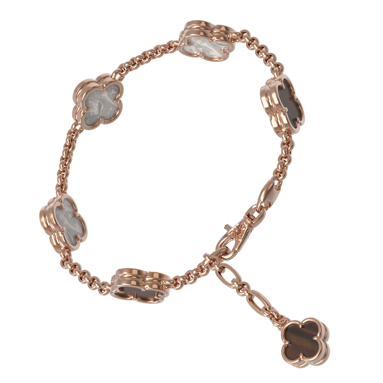 Браслет из золота c тигровым глазом и перламутром