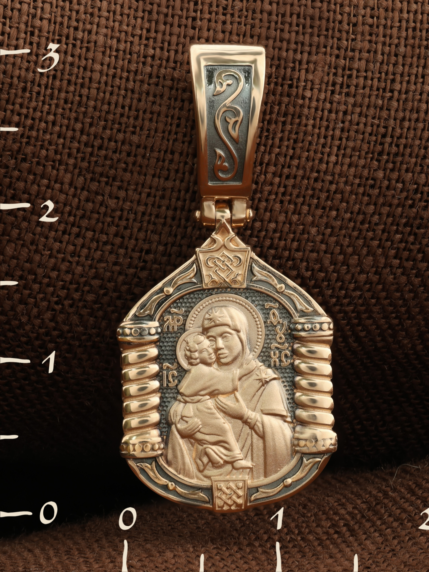 На лицевой стороне образка изображена Владимирская икона Божией Матери.