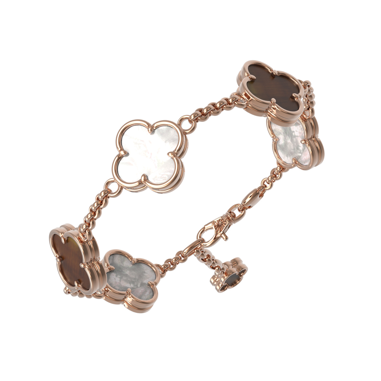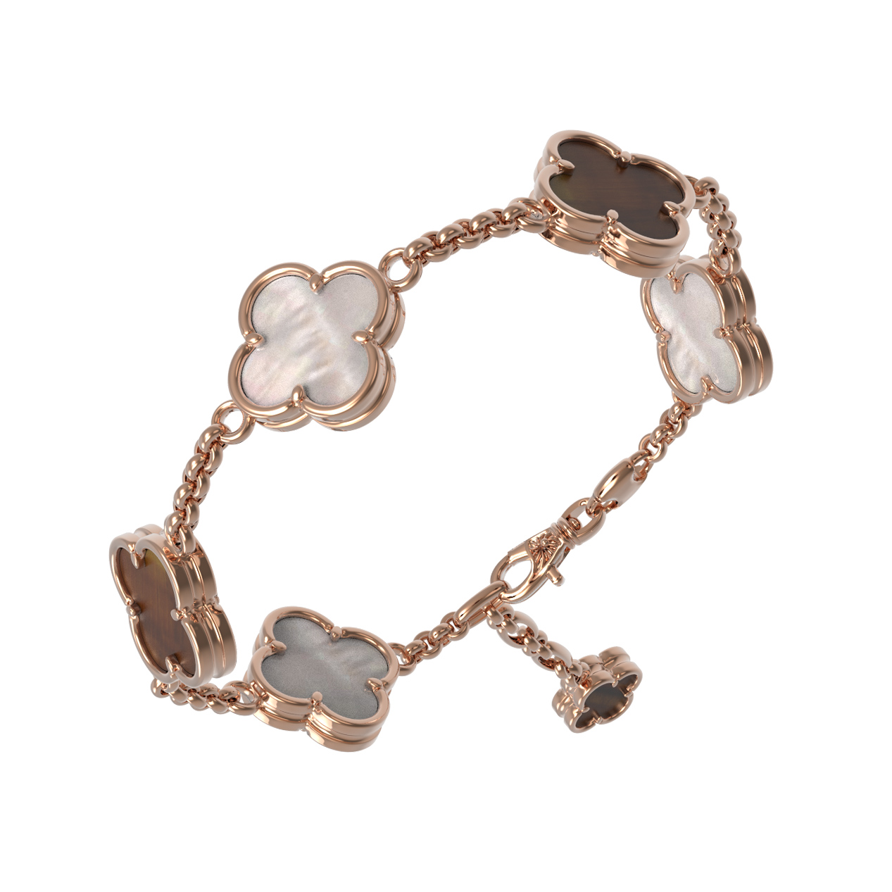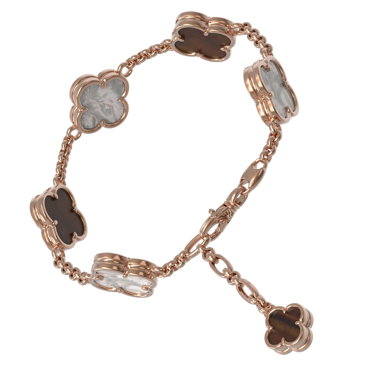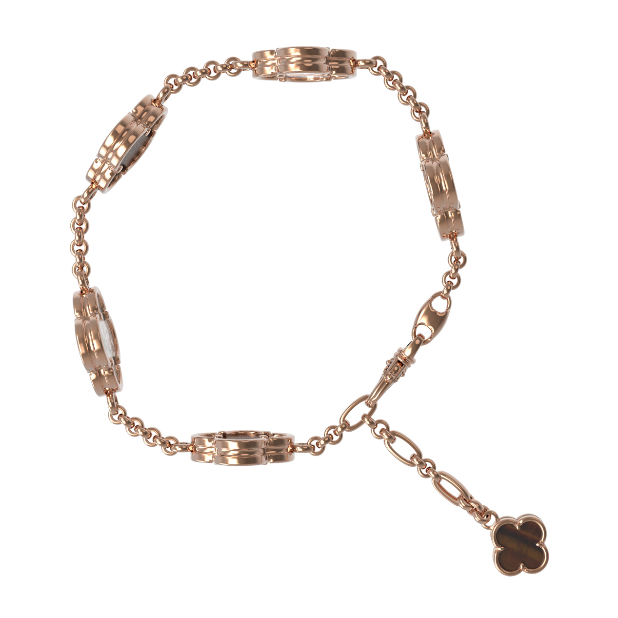 Браслет из золота c тигровым глазом и перламутром