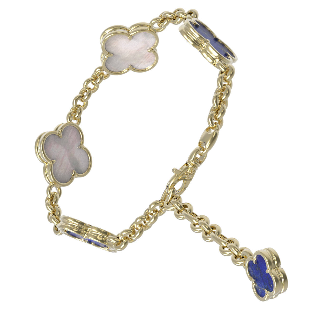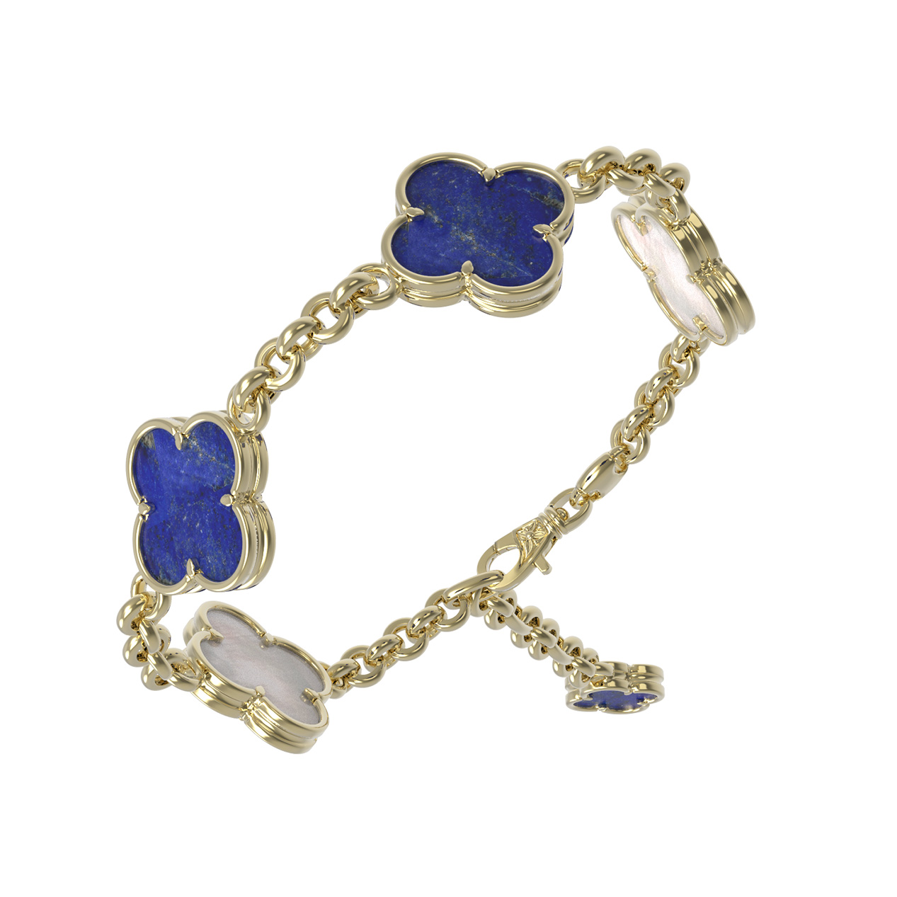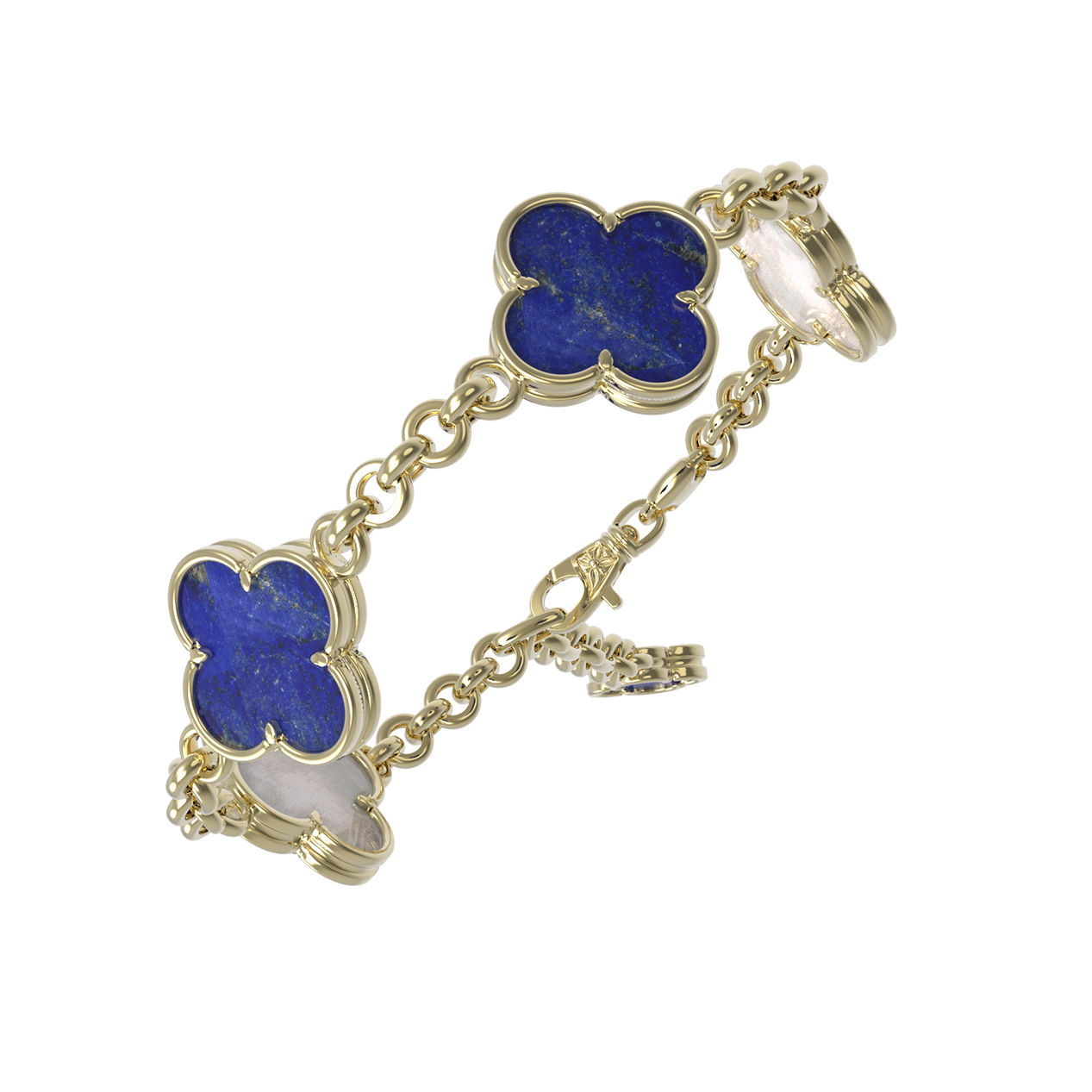 Браслет из лимонного золота c лазуритом и перламутром
