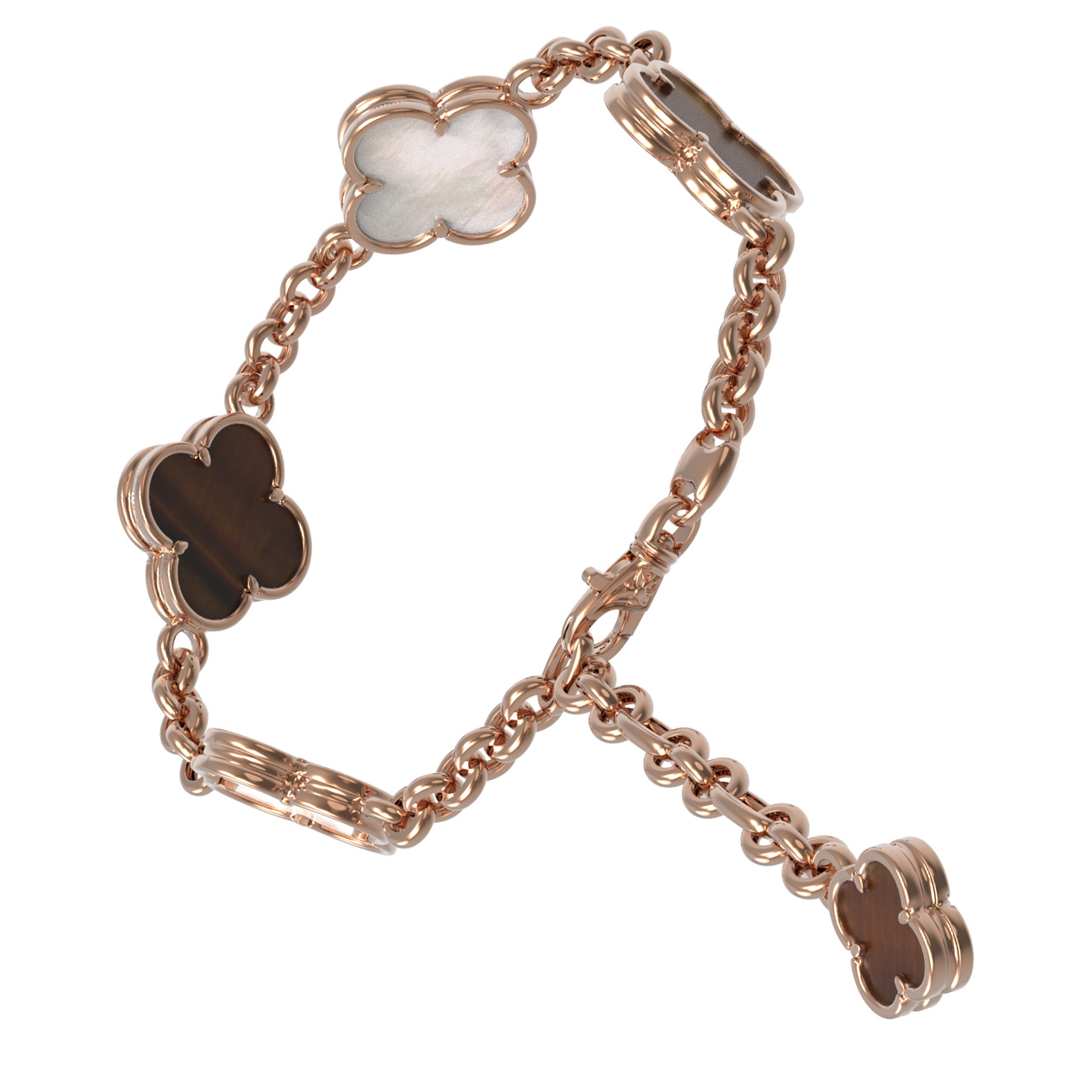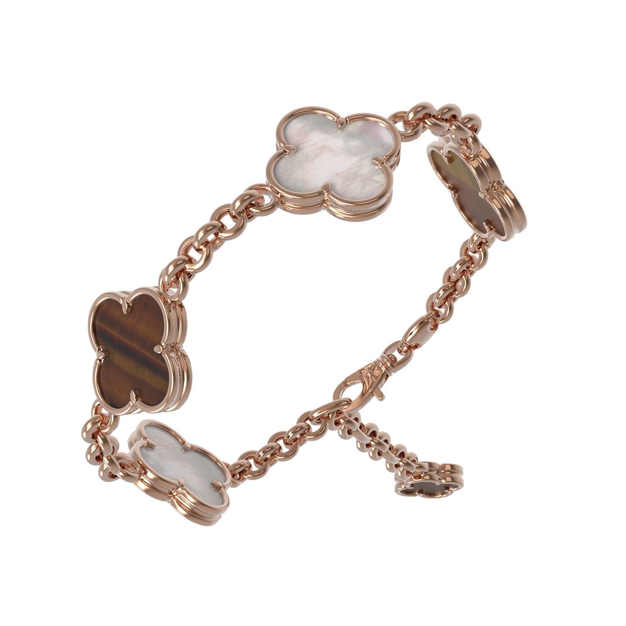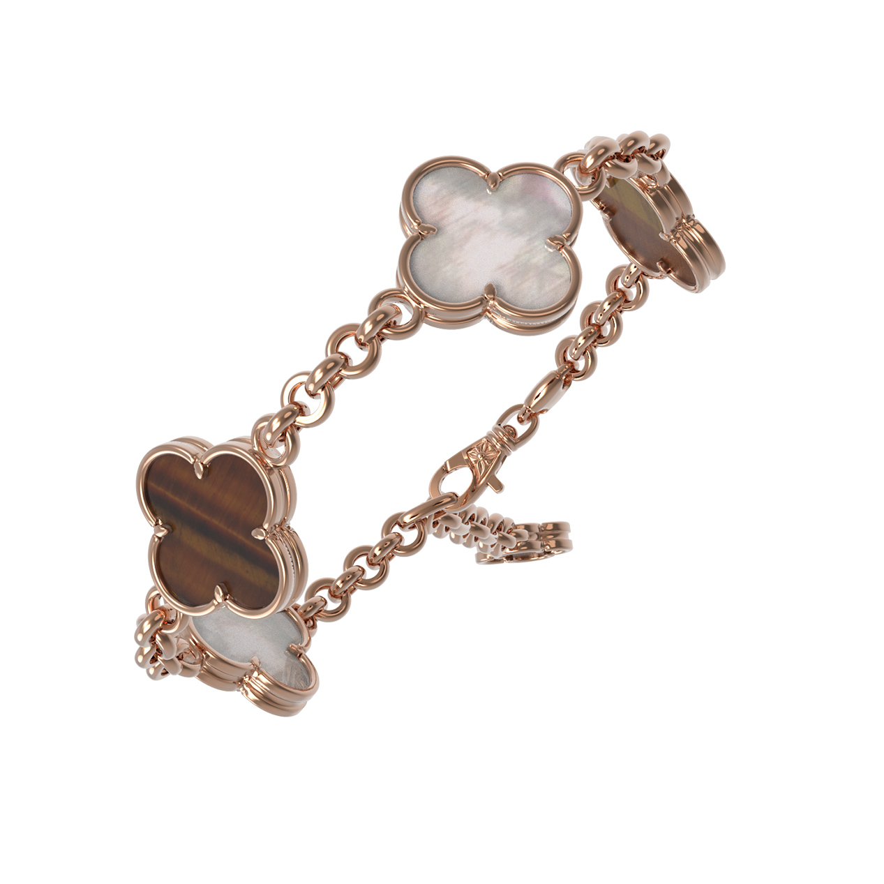 Браслет из золота c тигровым глазом и перламутром