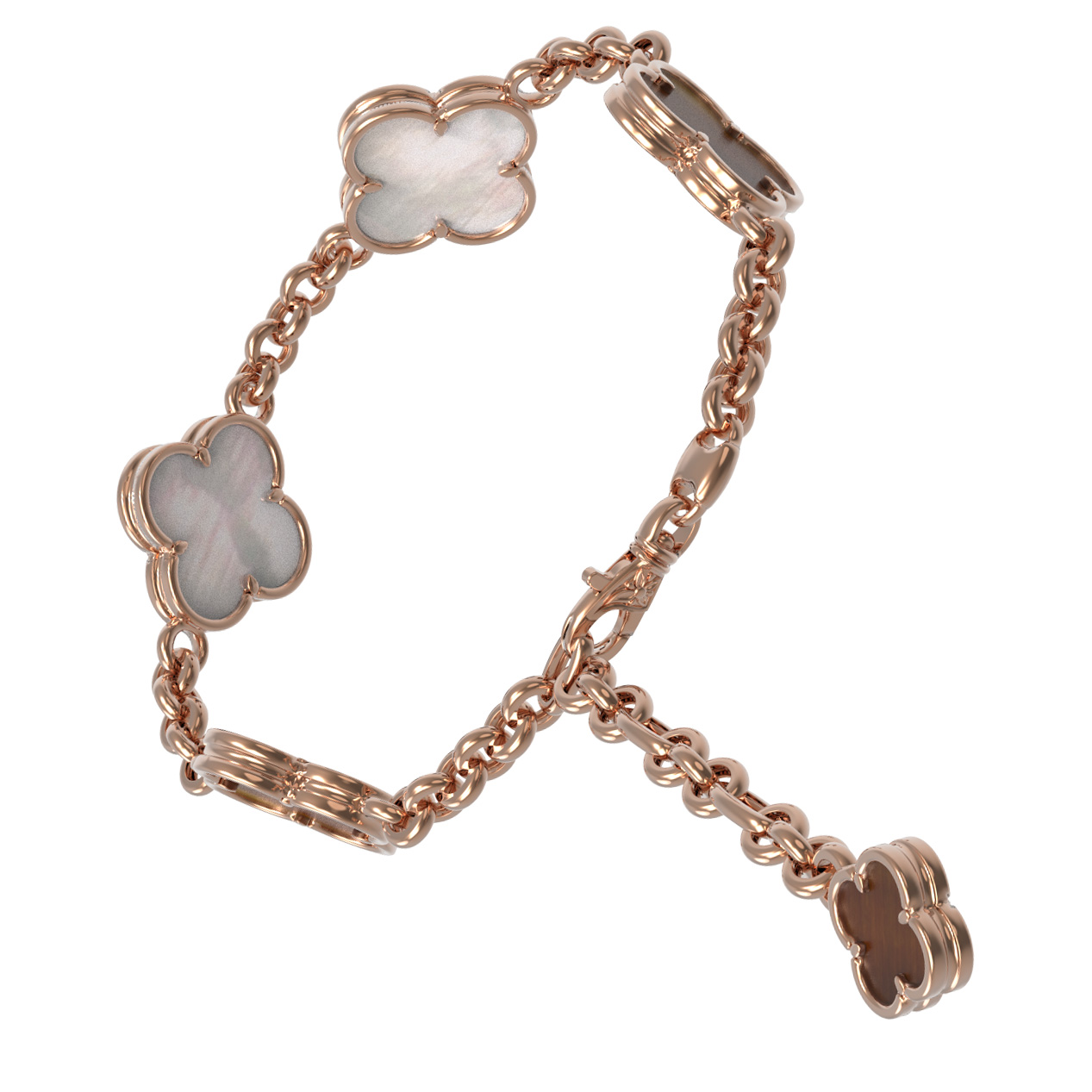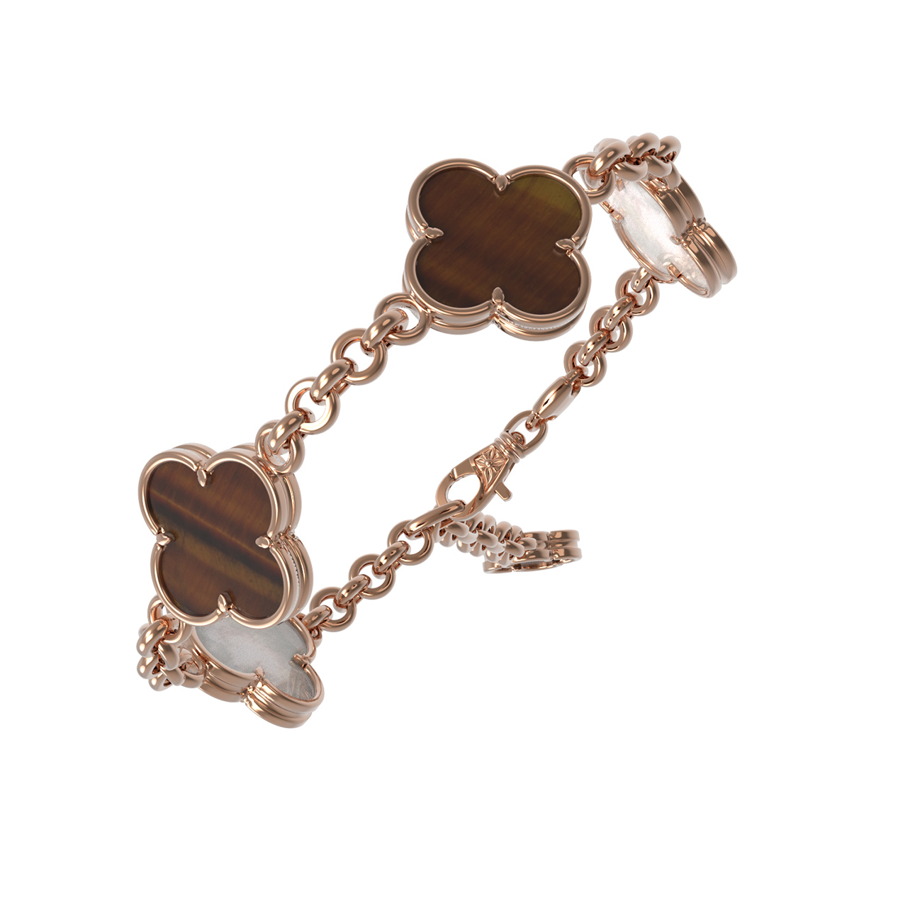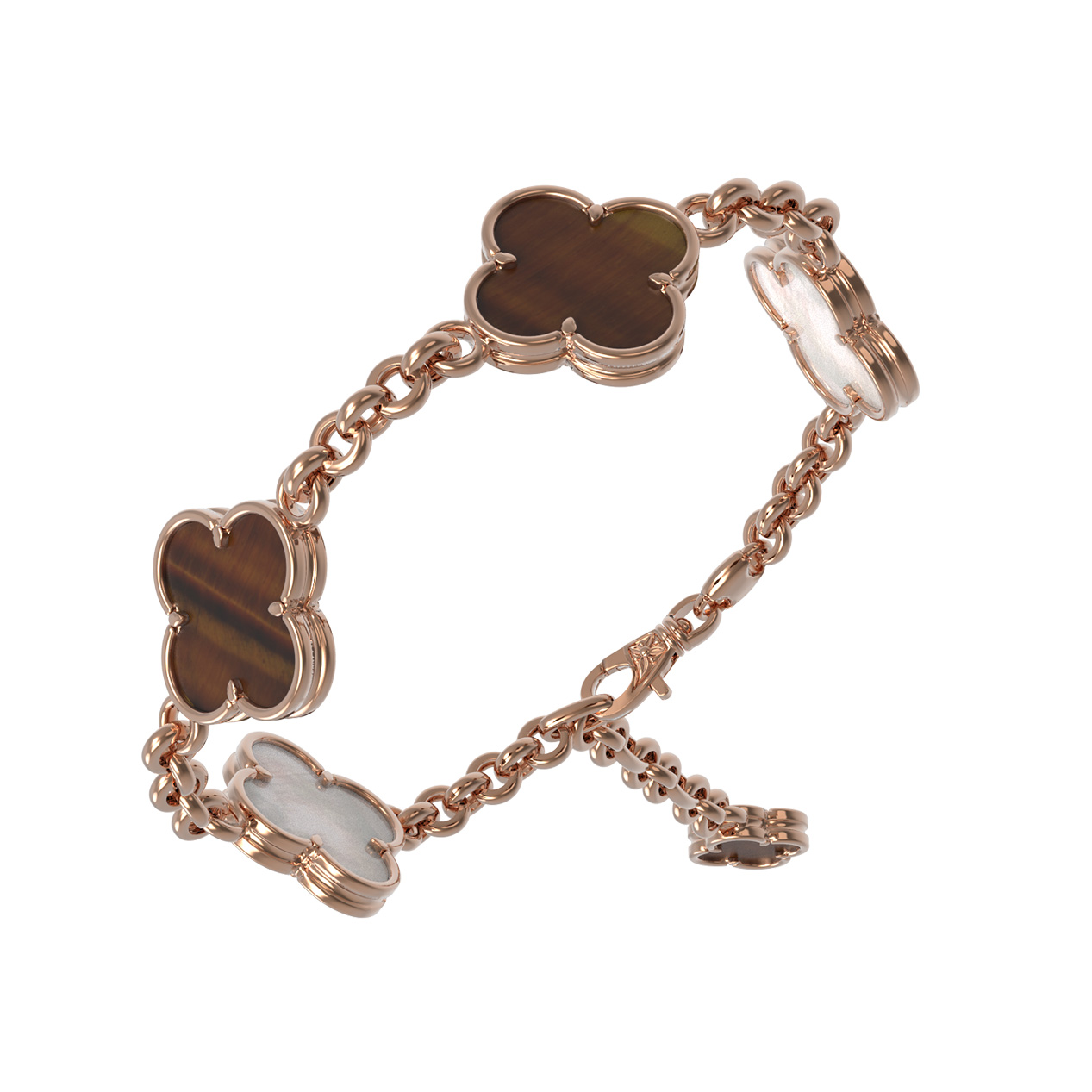 Браслет из золота c тигровым глазом и перламутром