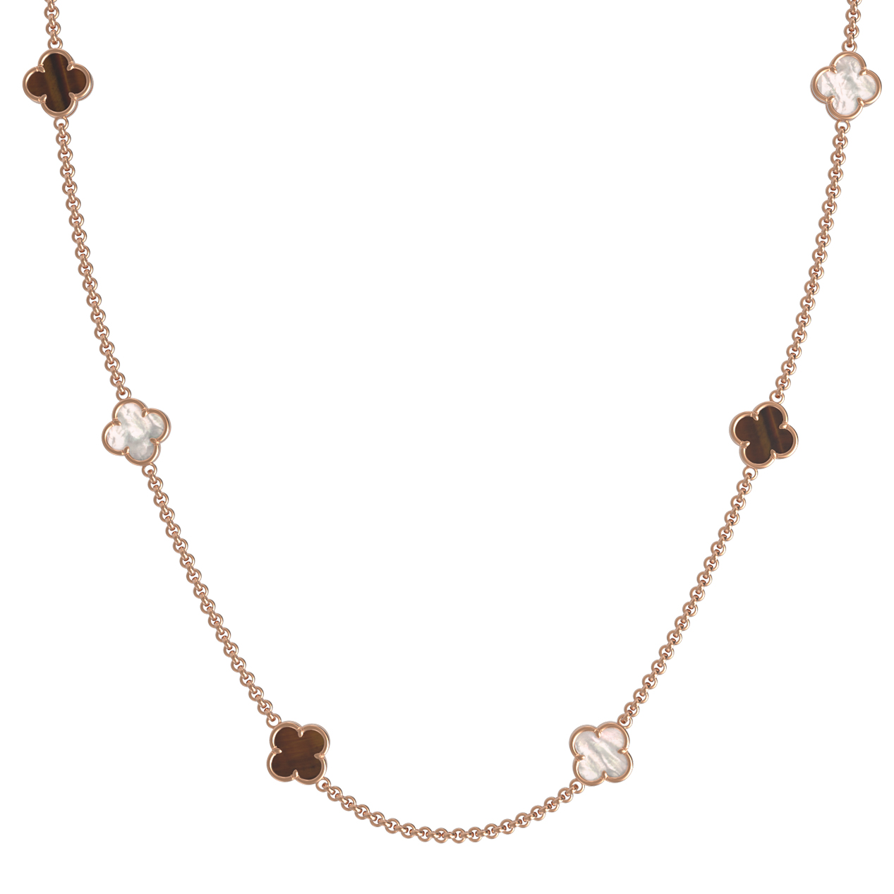 Колье из золота c тигровым глазом и перламутром