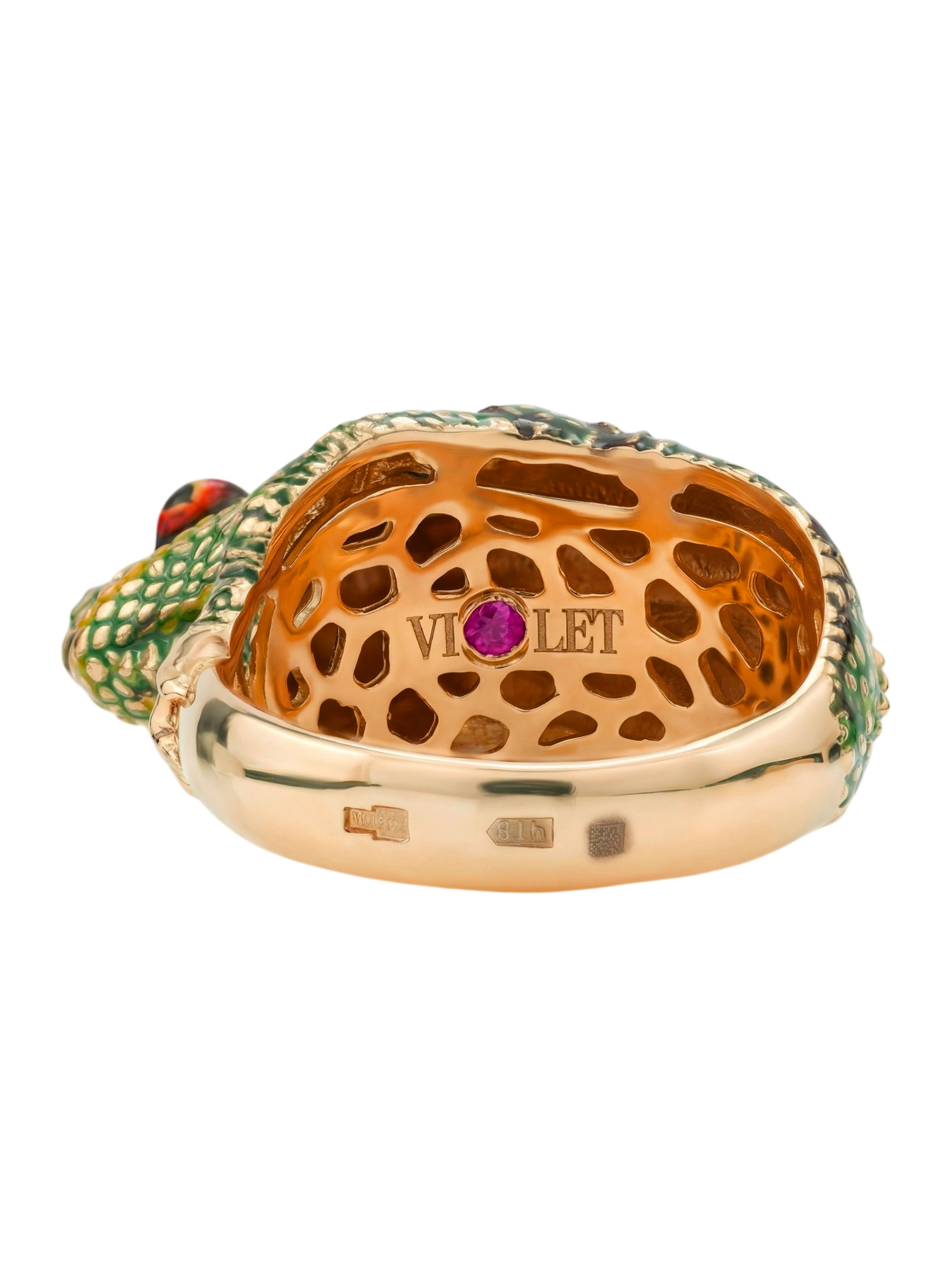 Кольцо из золота c эмалью и рубином