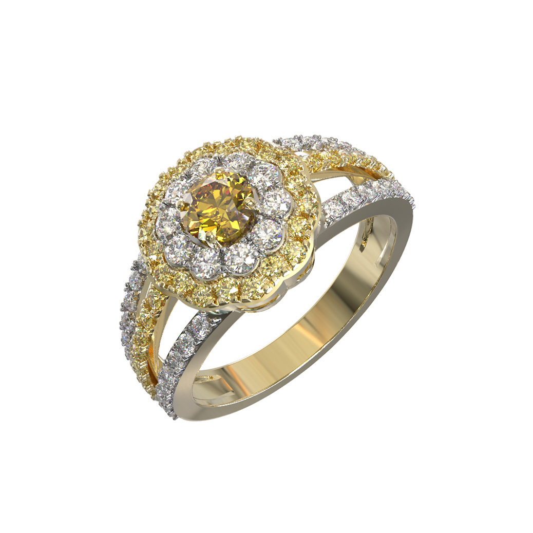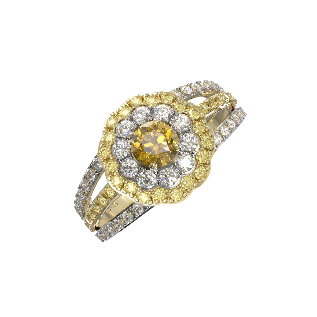 Кольцо из лимонного золота c бриллиантами и сапфиром