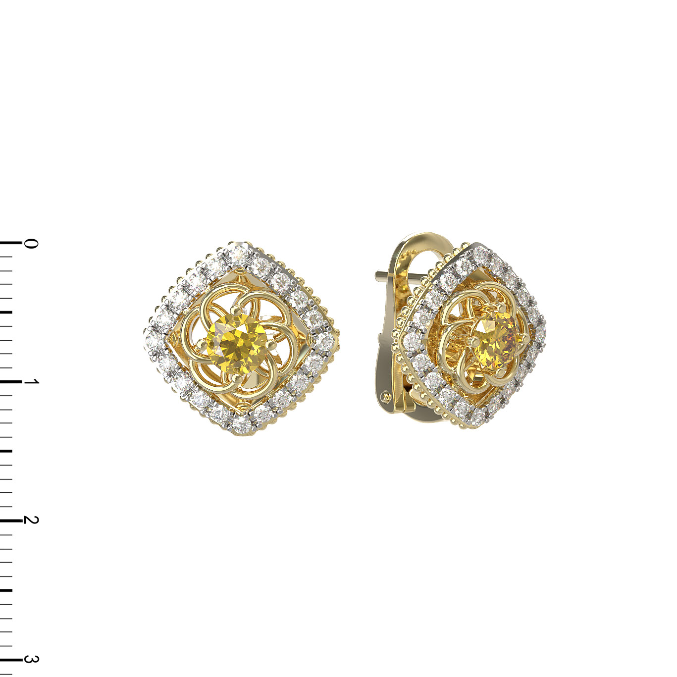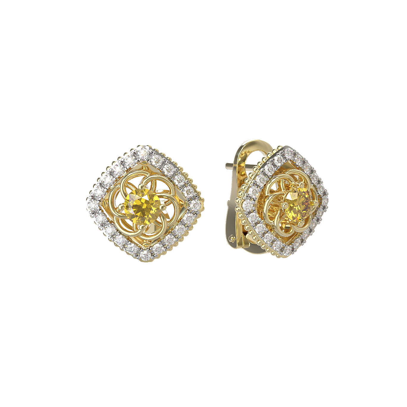 Серьги из лимонного золота c бриллиантами и сапфиром