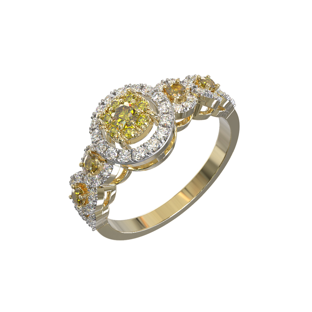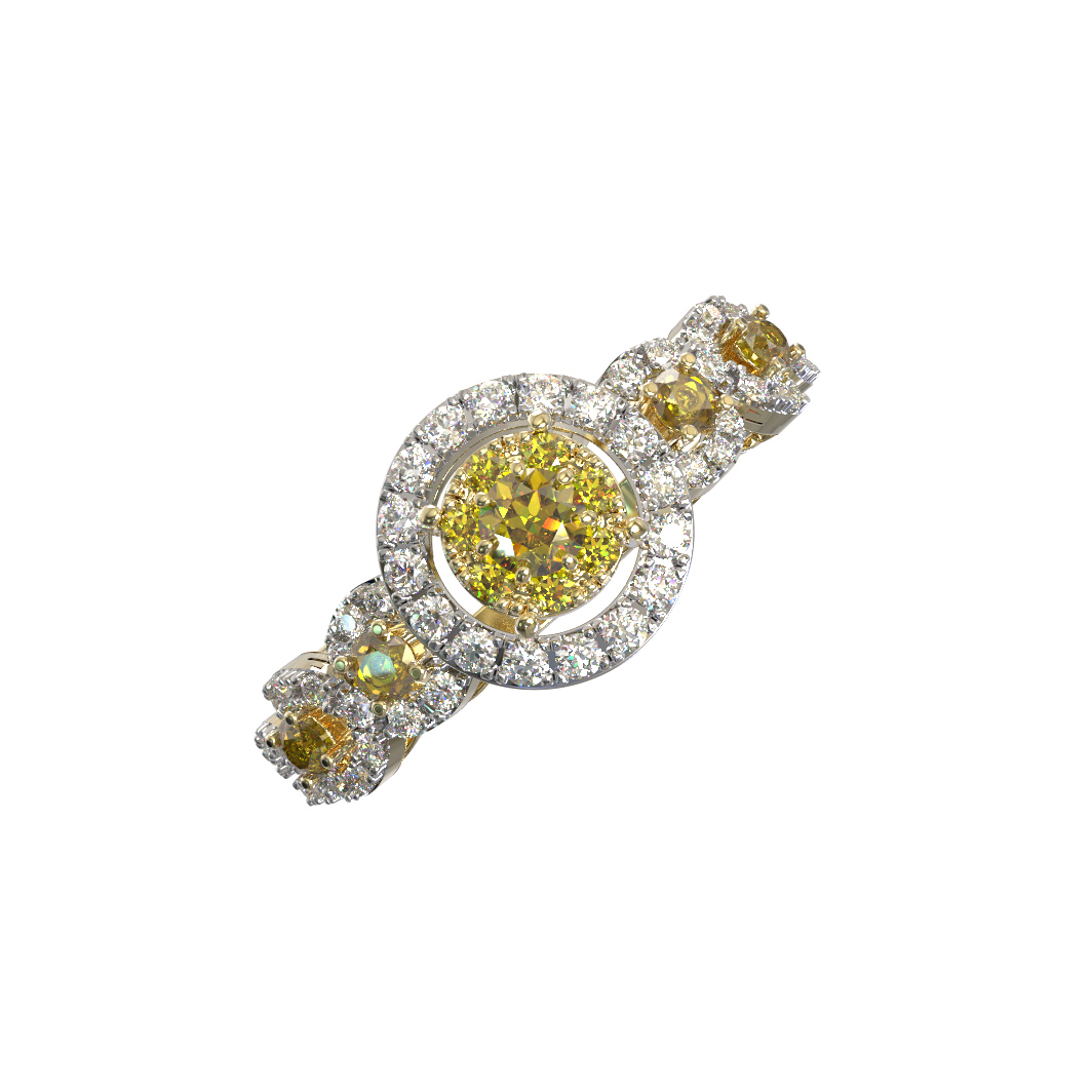 Кольцо из лимонного золота c бриллиантами и сапфиром