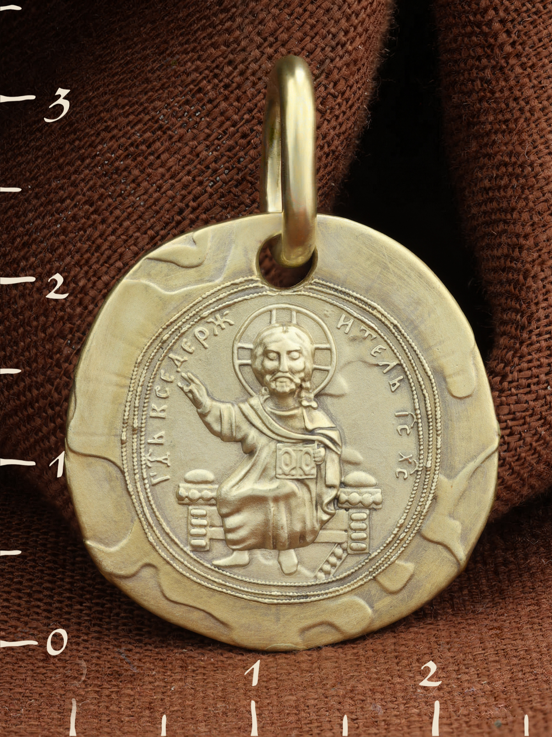 На лицевой стороне образка размещен образ Господа и Спасителя нашего Иисуса Христа — Господь Вседержитель или Пантократор (от греч. всевластный, всесильный). Он представлен как Царь Небесный и будущий Судия мира. Именование Иисуса «Вседержителем» указывает, с одной стороны, на Его Божественную природу: «Аз есмь Альфа и Омега, начало и конец, говорит Господь, Который есть и был и грядет, Вседержитель» (Откр. 1: 8). С другой стороны, такое именование связано и с человеческой природой Христа, искупившего крестной жертвой людские грехи и обновившего тем самым человеческую природу. Правой рукой Он благословляет, а левой держит Книгу. Она символизирует Евангелие — благую весть, принесенную Христом всему миру, а также и Книгу Жизни, где записаны имена всех, возлюбивших Бога. Указывая на раскрытое Евангелие и одновременно благословляя, Иисус недвусмысленно указывает нам путь к спасению души