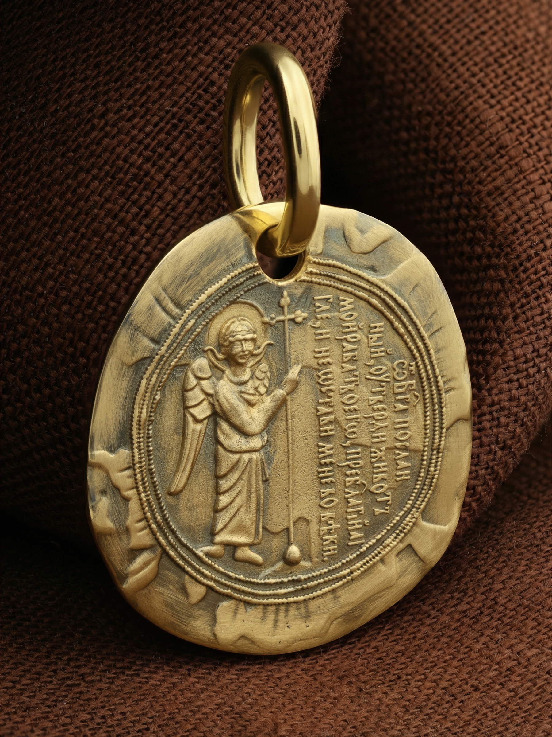 На оборотной стороне образка изображен Святой Ангел-Хранитель. В правой руке он держит крест. Ангел-Хранитель — это Ангел приставляемый Богом к человеку при крещении для охраны и помощи в добрых делах. Он невидимо находится при человеке на протяжении всей его жизни, если человек сохраняет в себе любовь к Богу и истинную веру перед Ним. Ангел-Xранитель делают для нас все, что служит к истинному нашему благу и спасению. Рядом с образом размещена молитва: «От Бога посланный, утверди живот мой, раба твоего, преблагий Aнгеле, и не остави мене во веки.»
