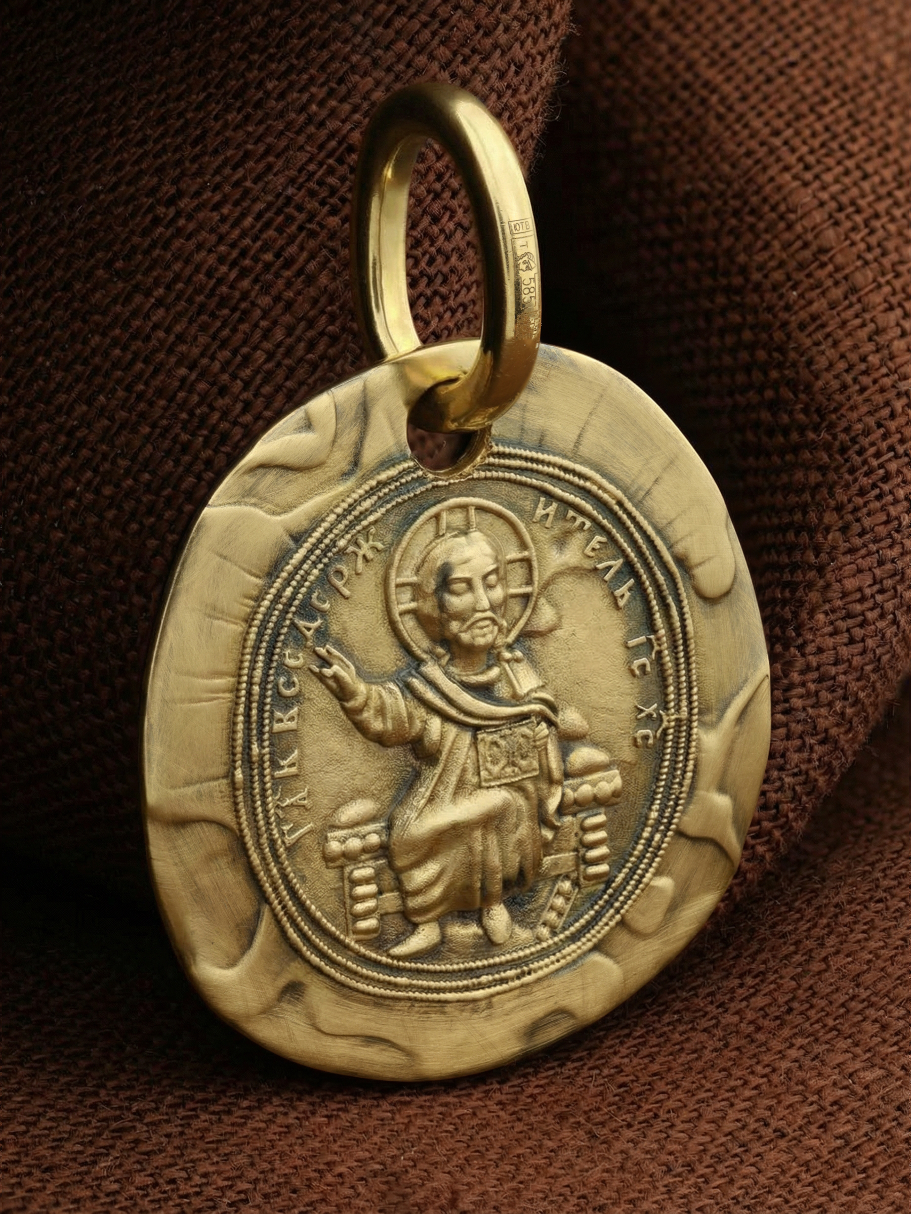 На лицевой стороне образка размещен образ Господа и Спасителя нашего Иисуса Христа — Господь Вседержитель или Пантократор (от греч. всевластный, всесильный). Он представлен как Царь Небесный и будущий Судия мира. Именование Иисуса «Вседержителем» указывает, с одной стороны, на Его Божественную природу: «Аз есмь Альфа и Омега, начало и конец, говорит Господь, Который есть и был и грядет, Вседержитель» (Откр. 1: 8). С другой стороны, такое именование связано и с человеческой природой Христа, искупившего крестной жертвой людские грехи и обновившего тем самым человеческую природу. Правой рукой Он благословляет, а левой держит Книгу. Она символизирует Евангелие — благую весть, принесенную Христом всему миру, а также и Книгу Жизни, где записаны имена всех, возлюбивших Бога. Указывая на раскрытое Евангелие и одновременно благословляя, Иисус недвусмысленно указывает нам путь к спасению души