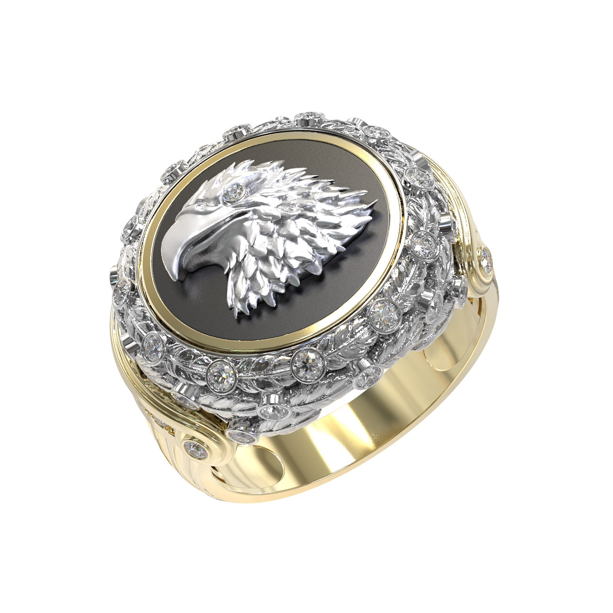 Кольцо из лимонного золота c бриллиантами и ониксом