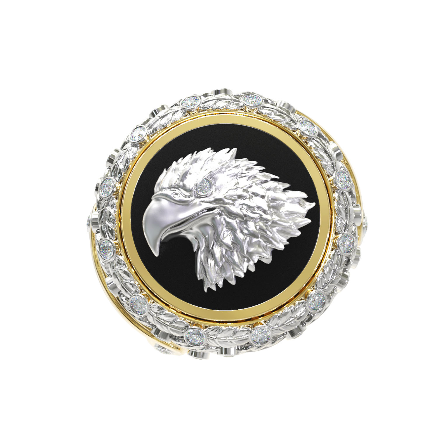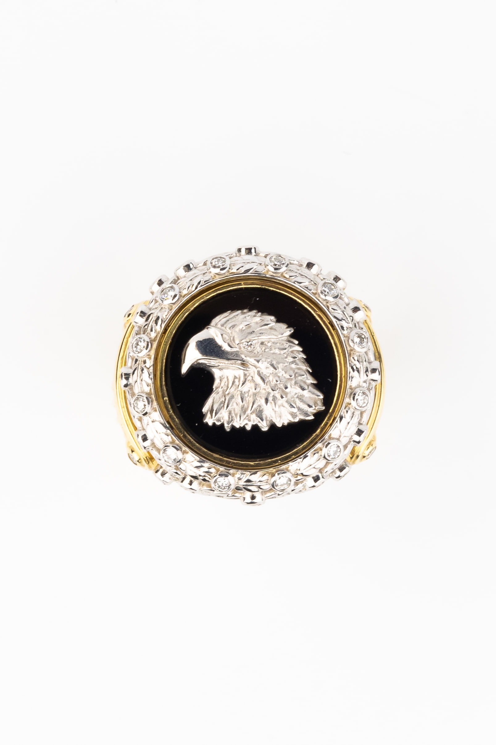 Кольцо из лимонного золота c бриллиантами и ониксом
