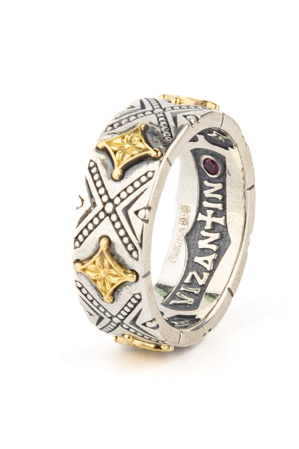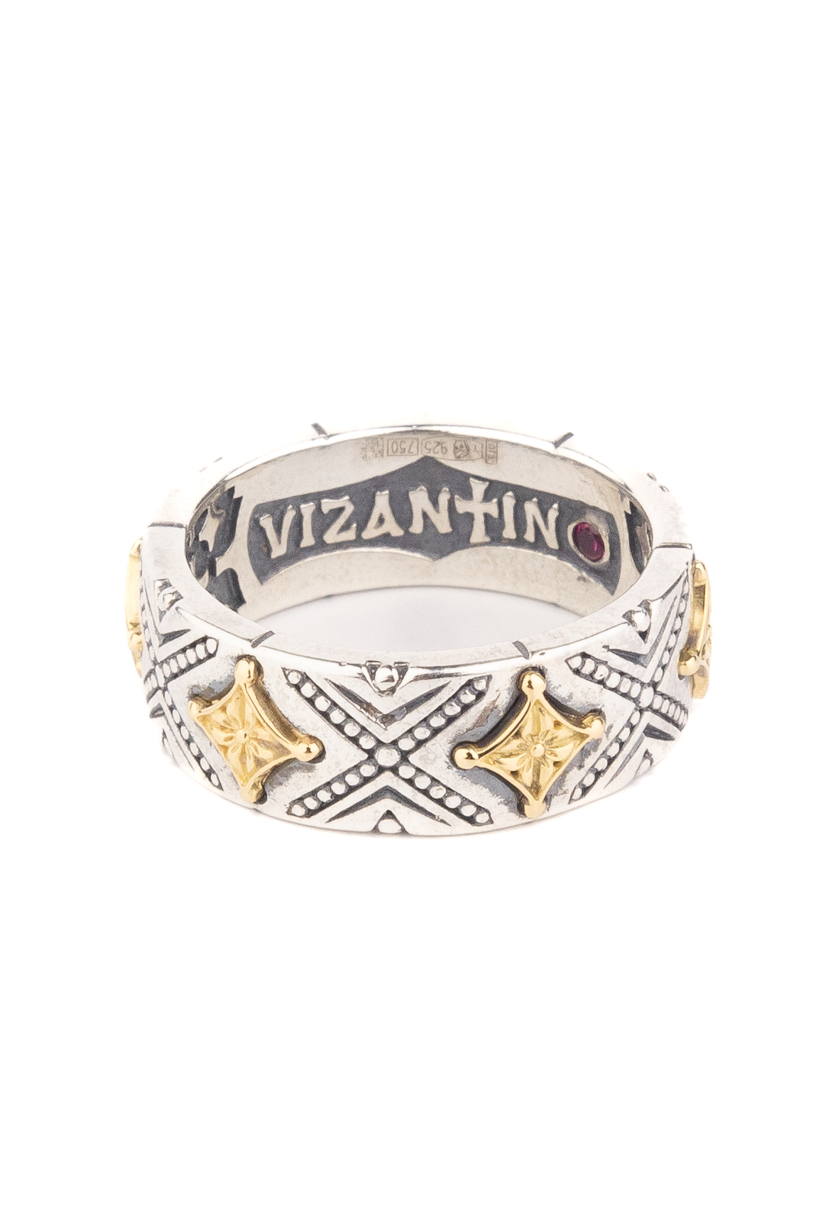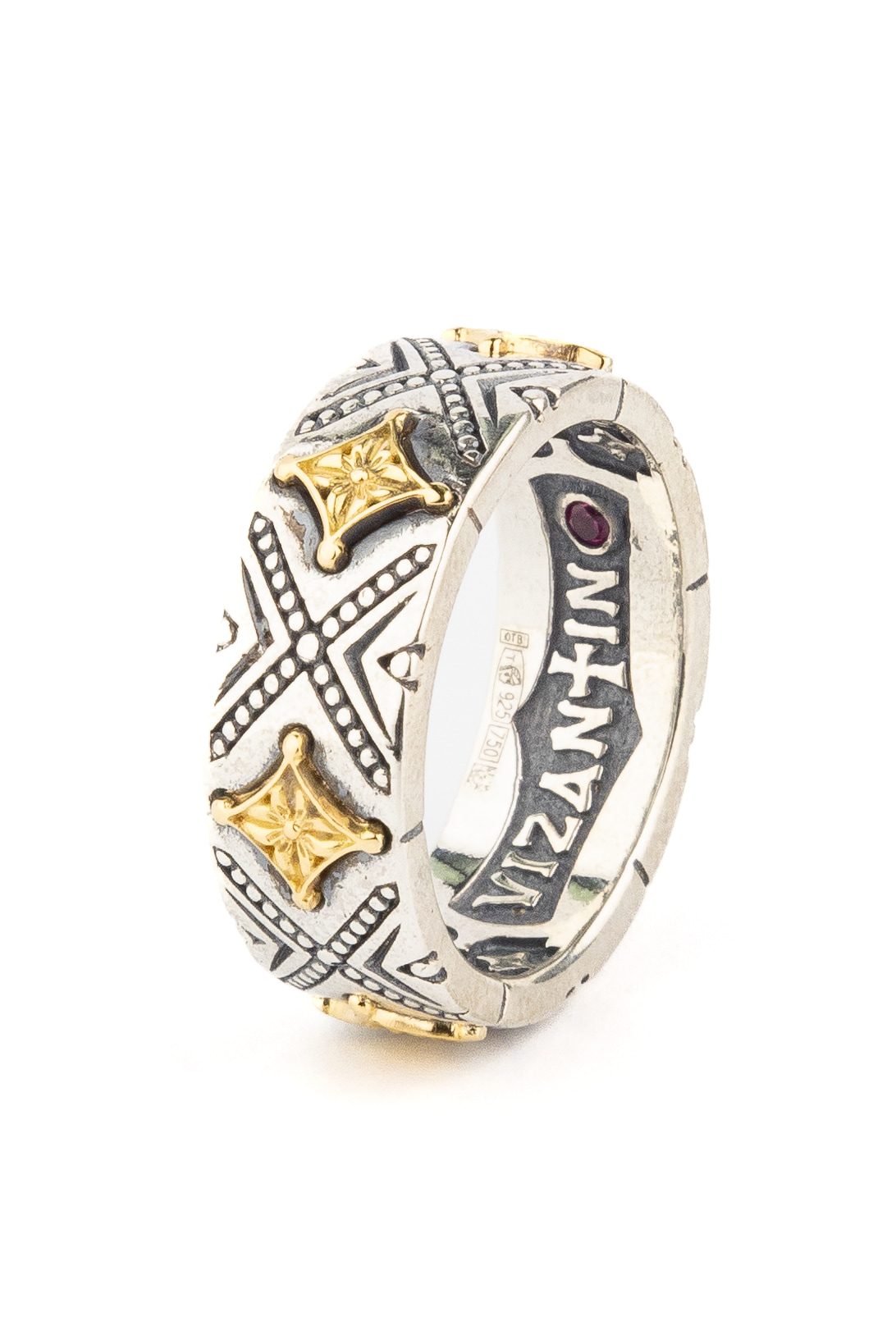 Кольцо из серебра и золота c рубином