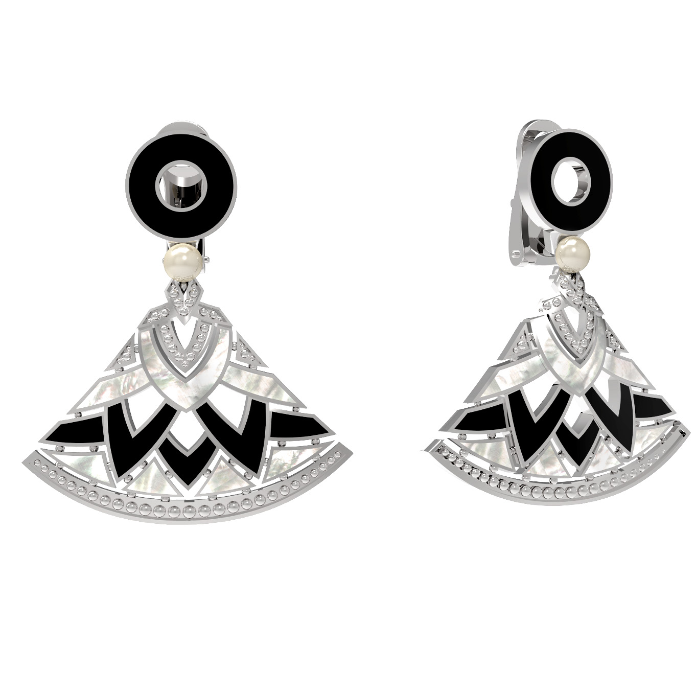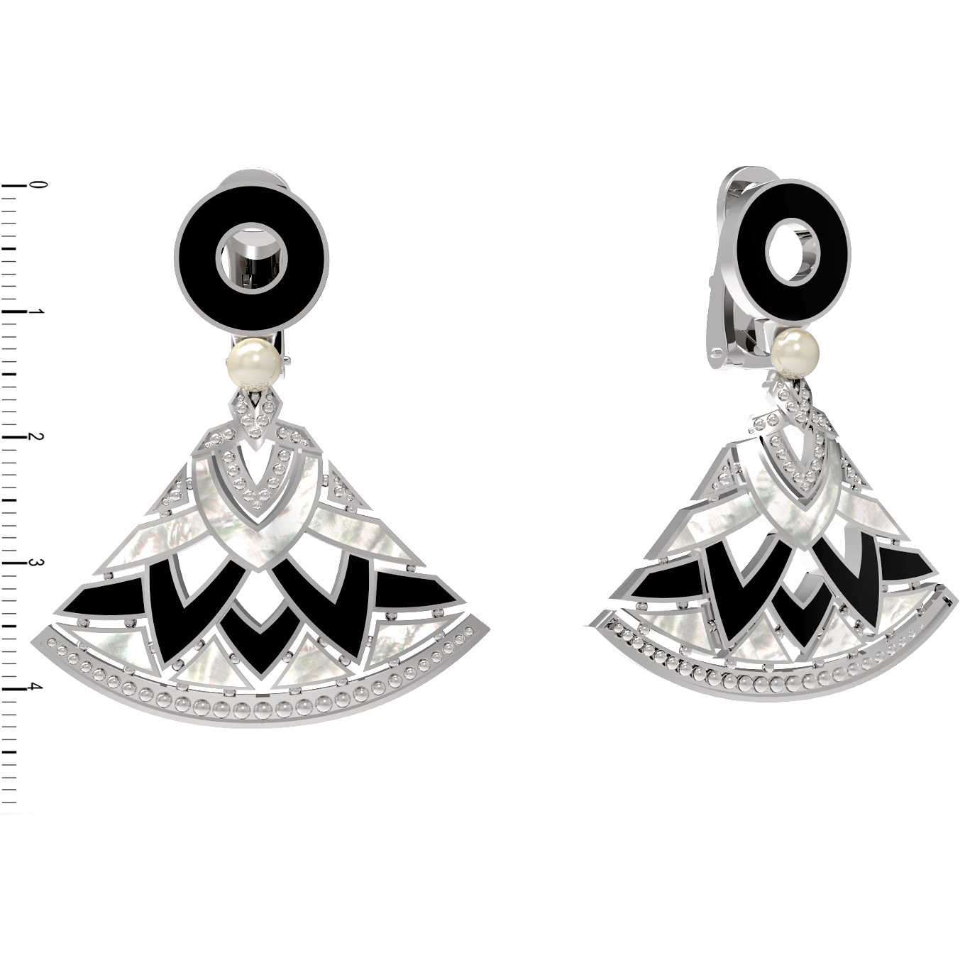 Серьги из белого золота c жемчугом, ониксом и перламутром
