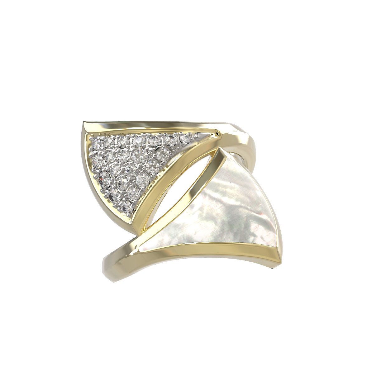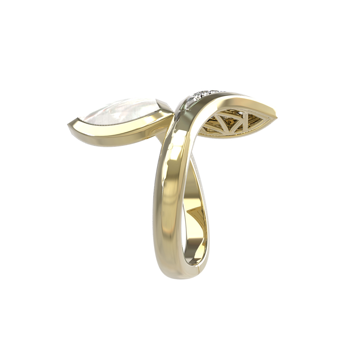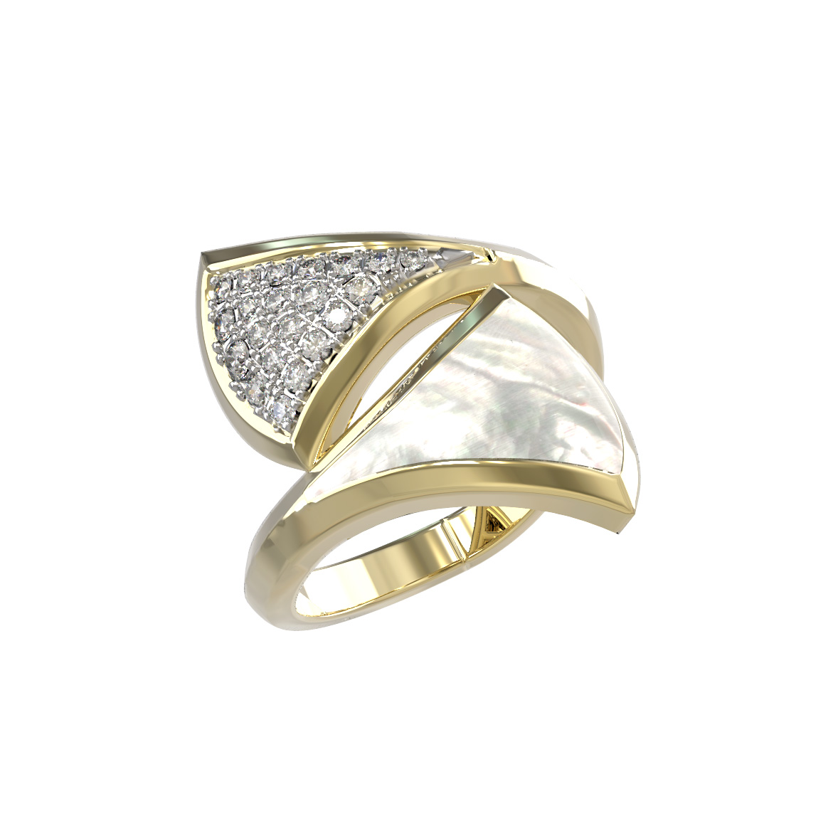 Кольцо из лимонного золота c бриллиантами и перламутром