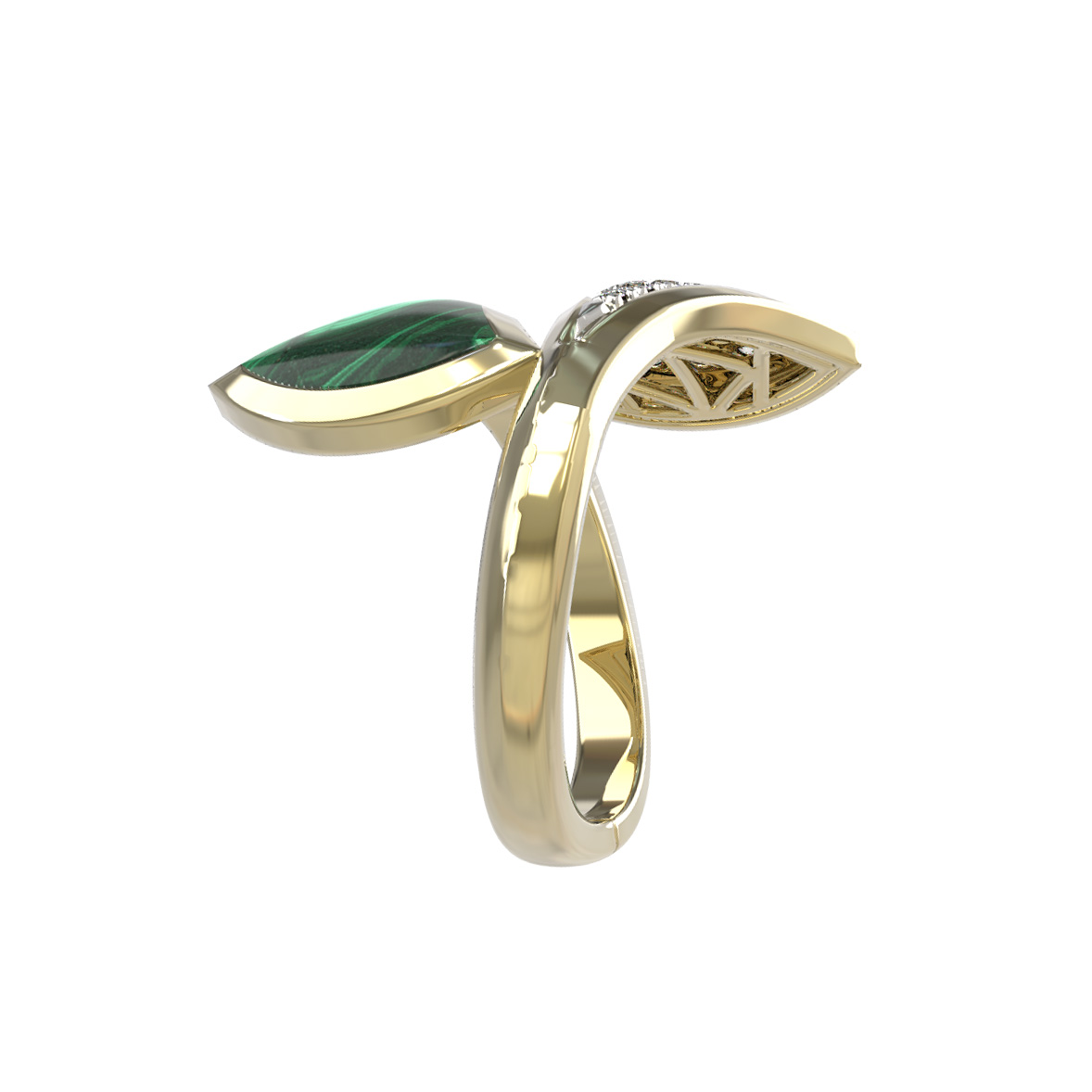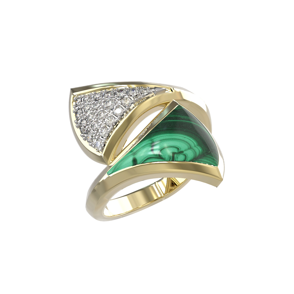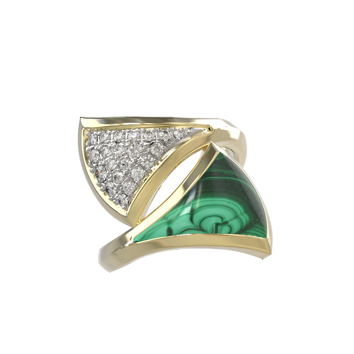 Кольцо из лимонного золота c бриллиантами и малахитом