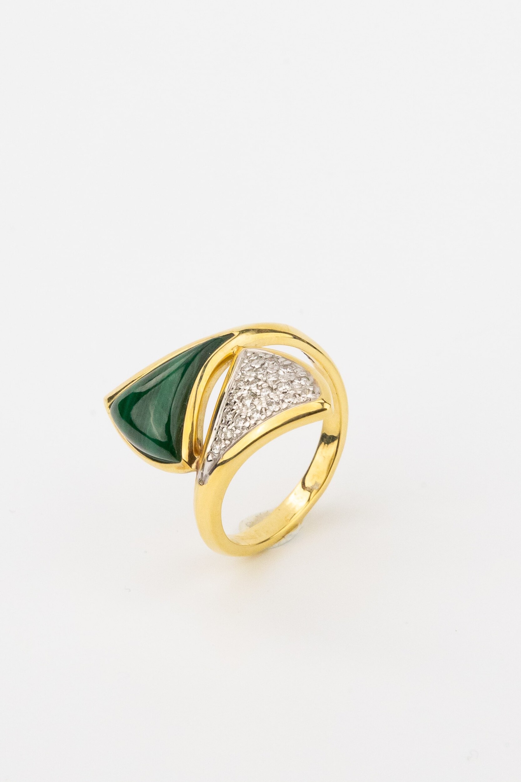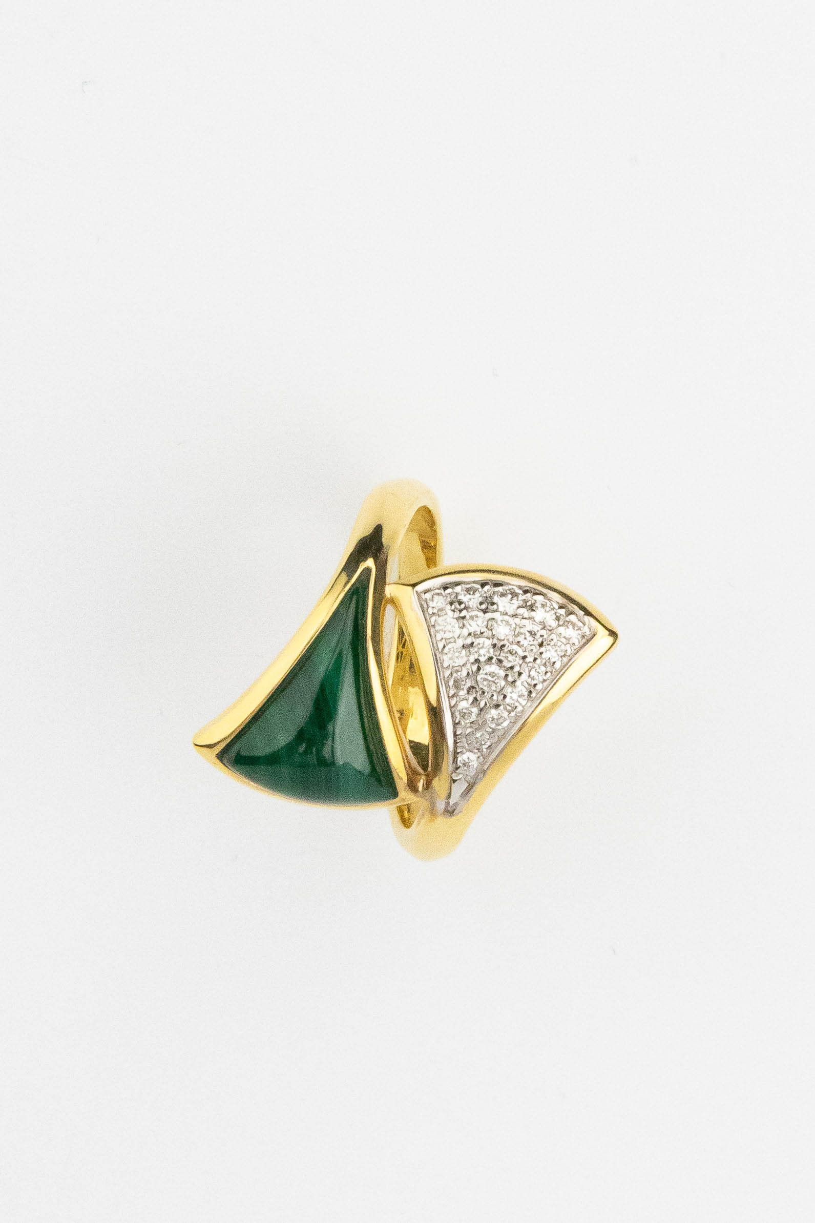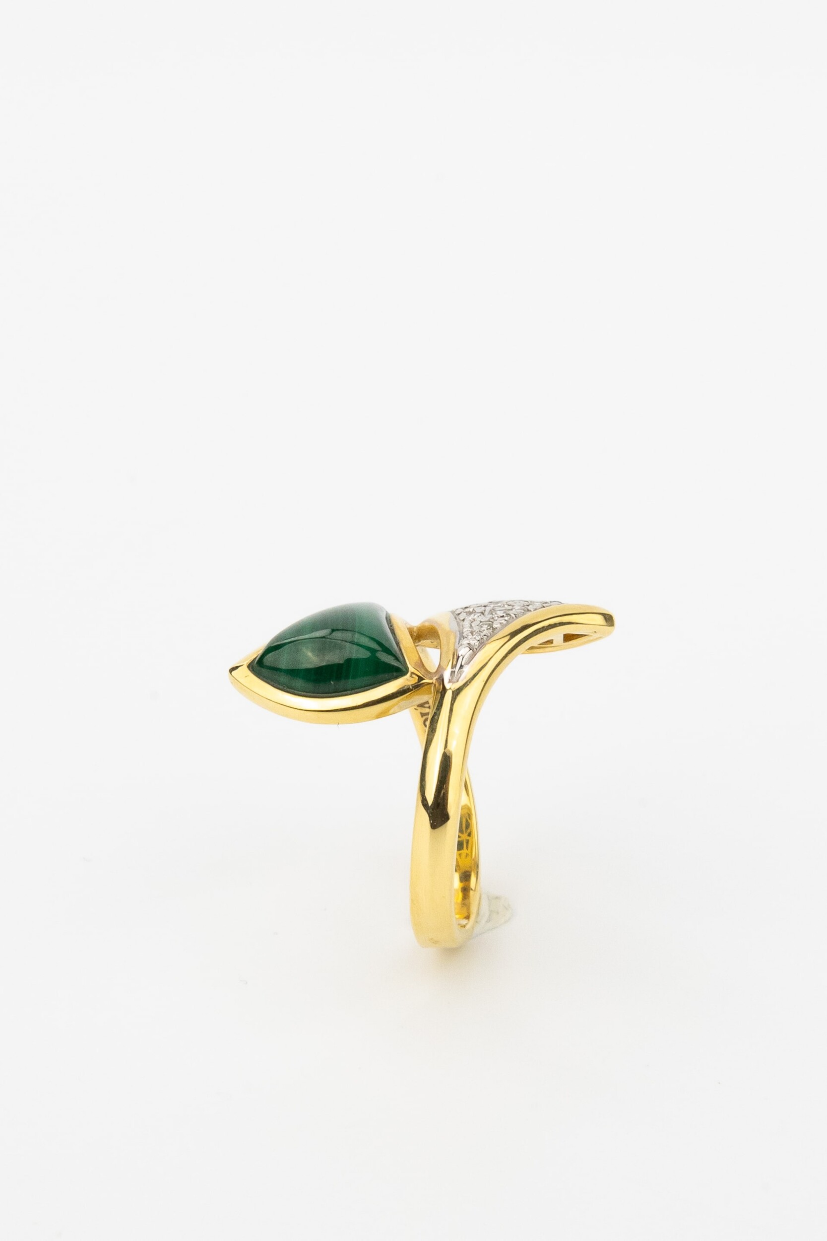 Кольцо из лимонного золота c бриллиантами и малахитом