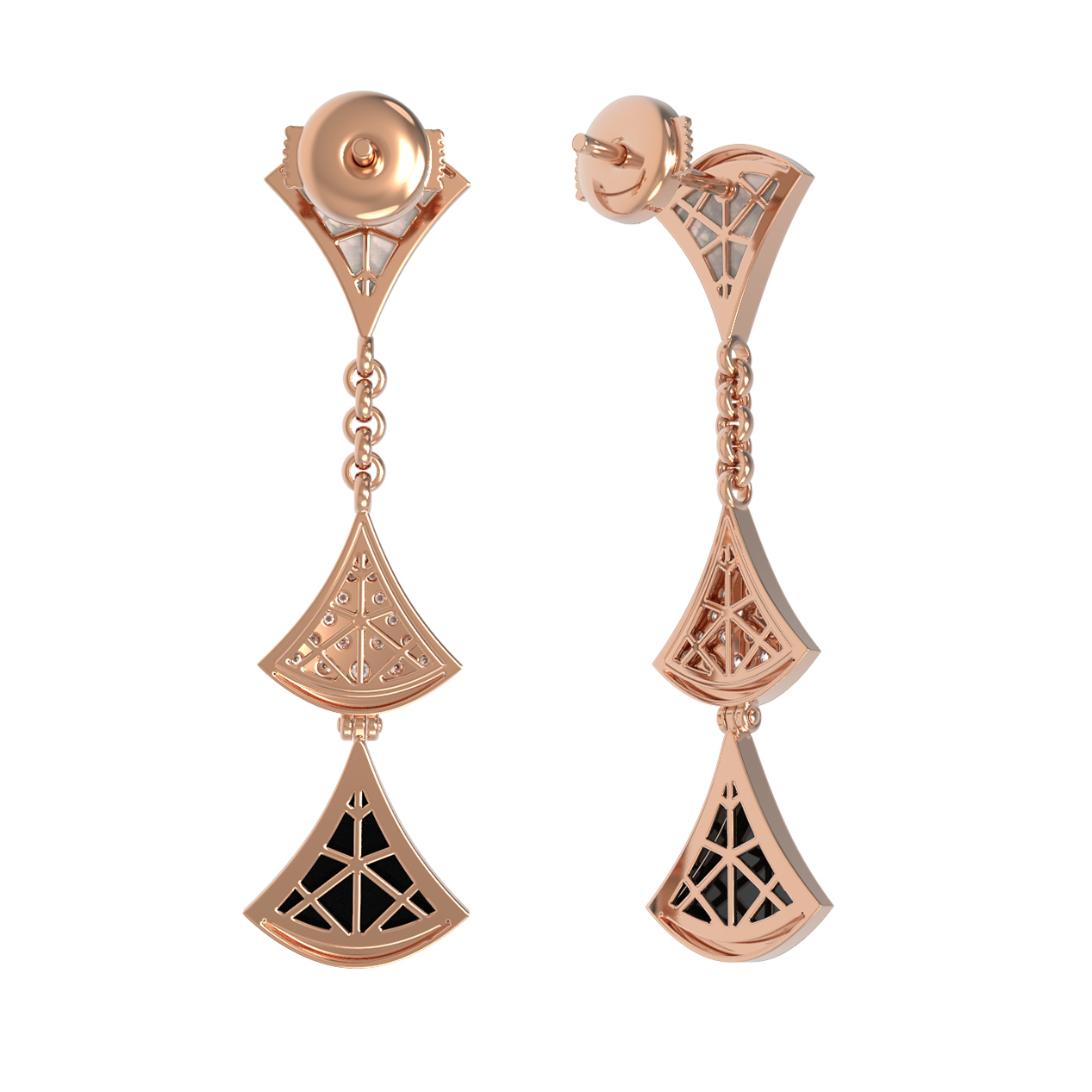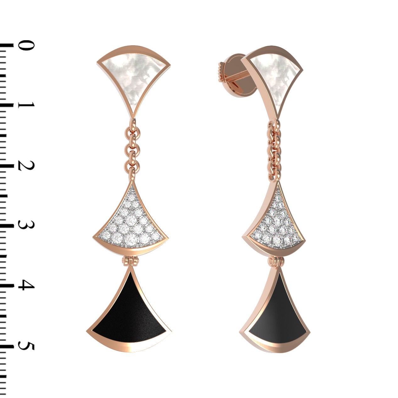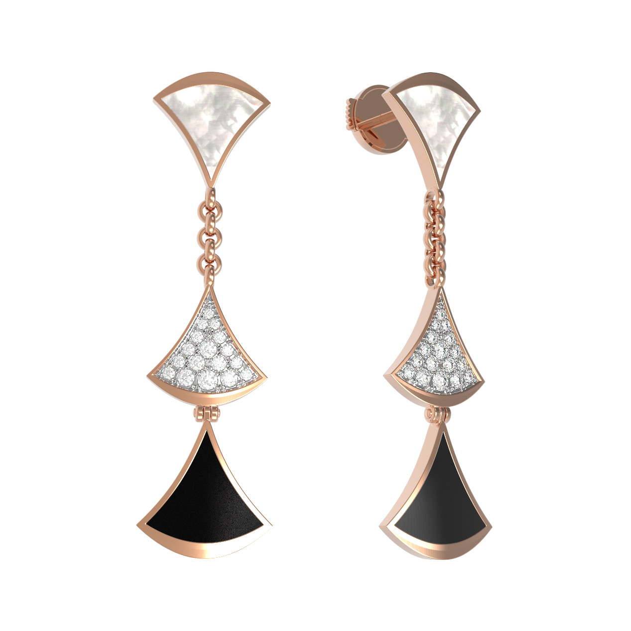 Серьги из золота c бриллиантами, ониксом и перламутром