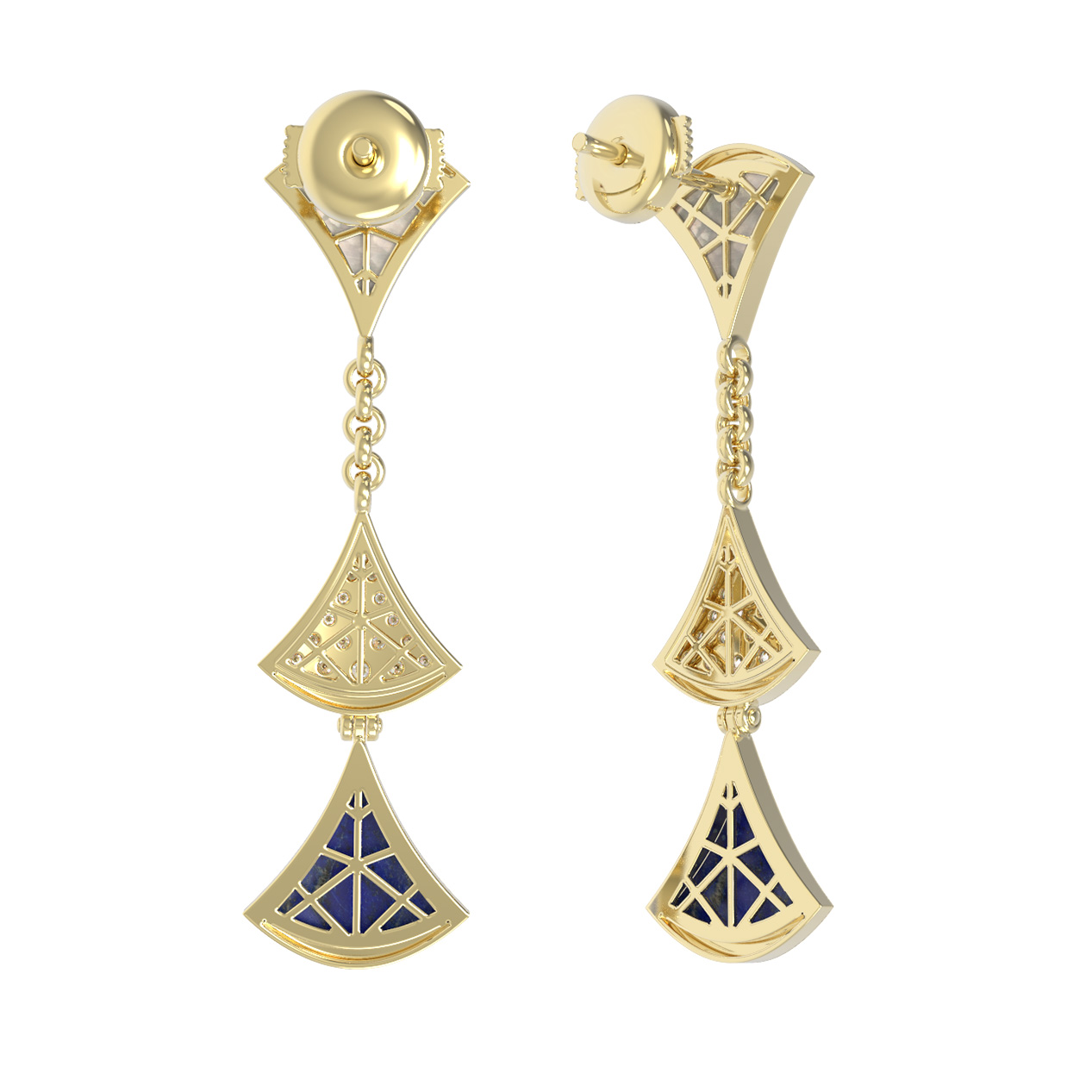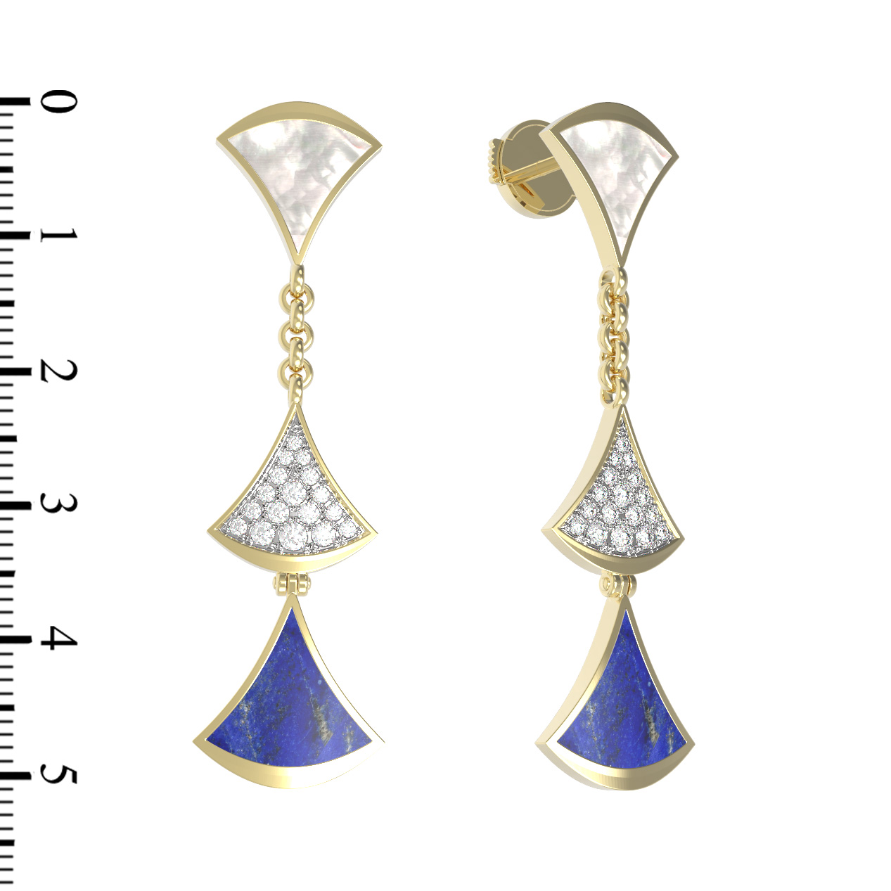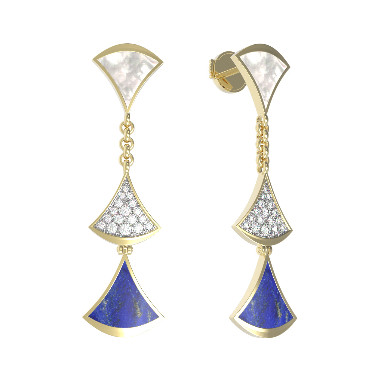 Серьги из лимонного золота c бриллиантами, лазуритом и перламутром