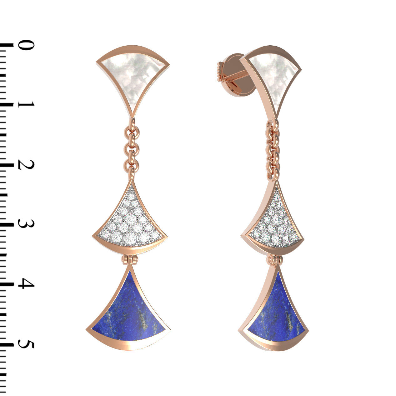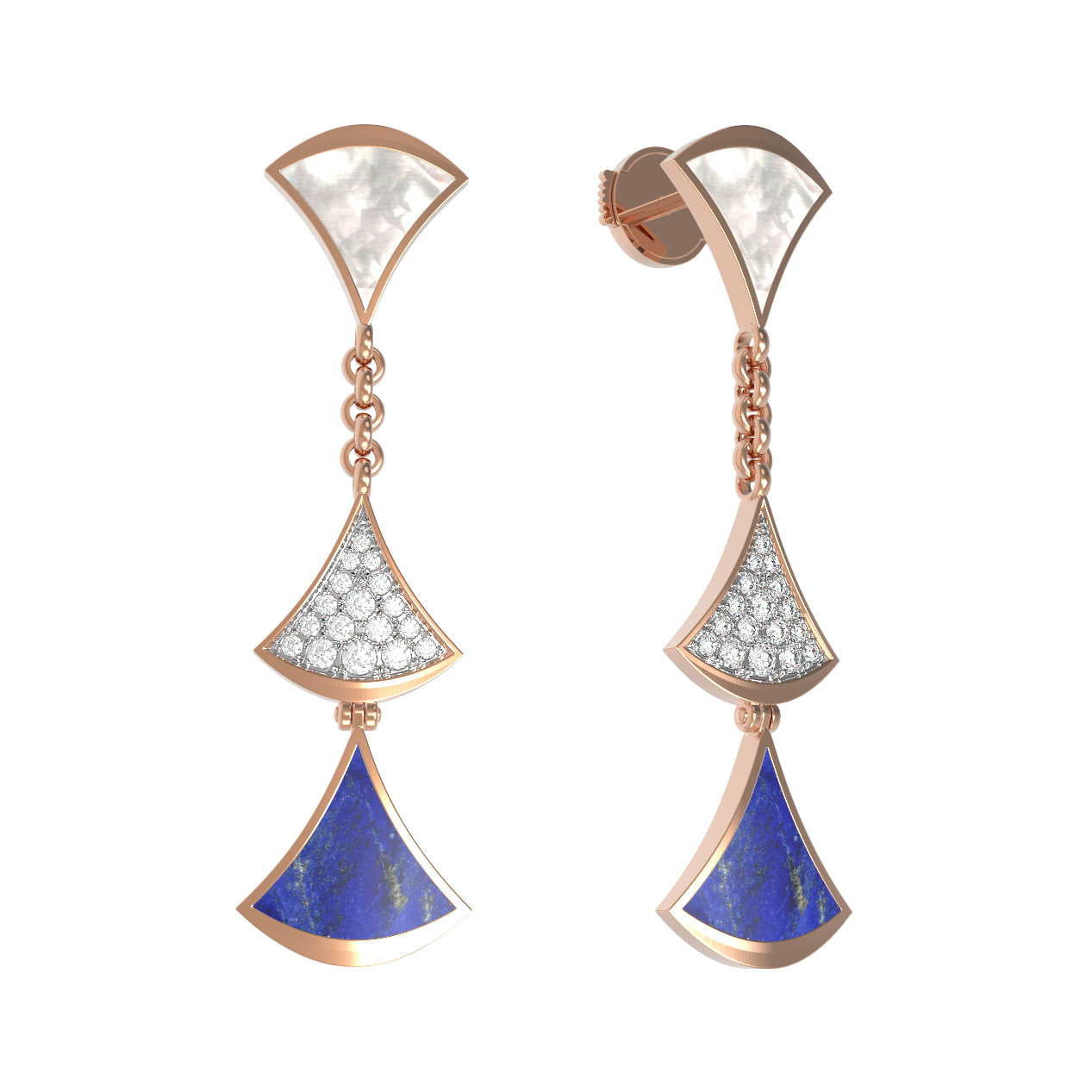 Серьги из золота c бриллиантами, лазуритом и перламутром