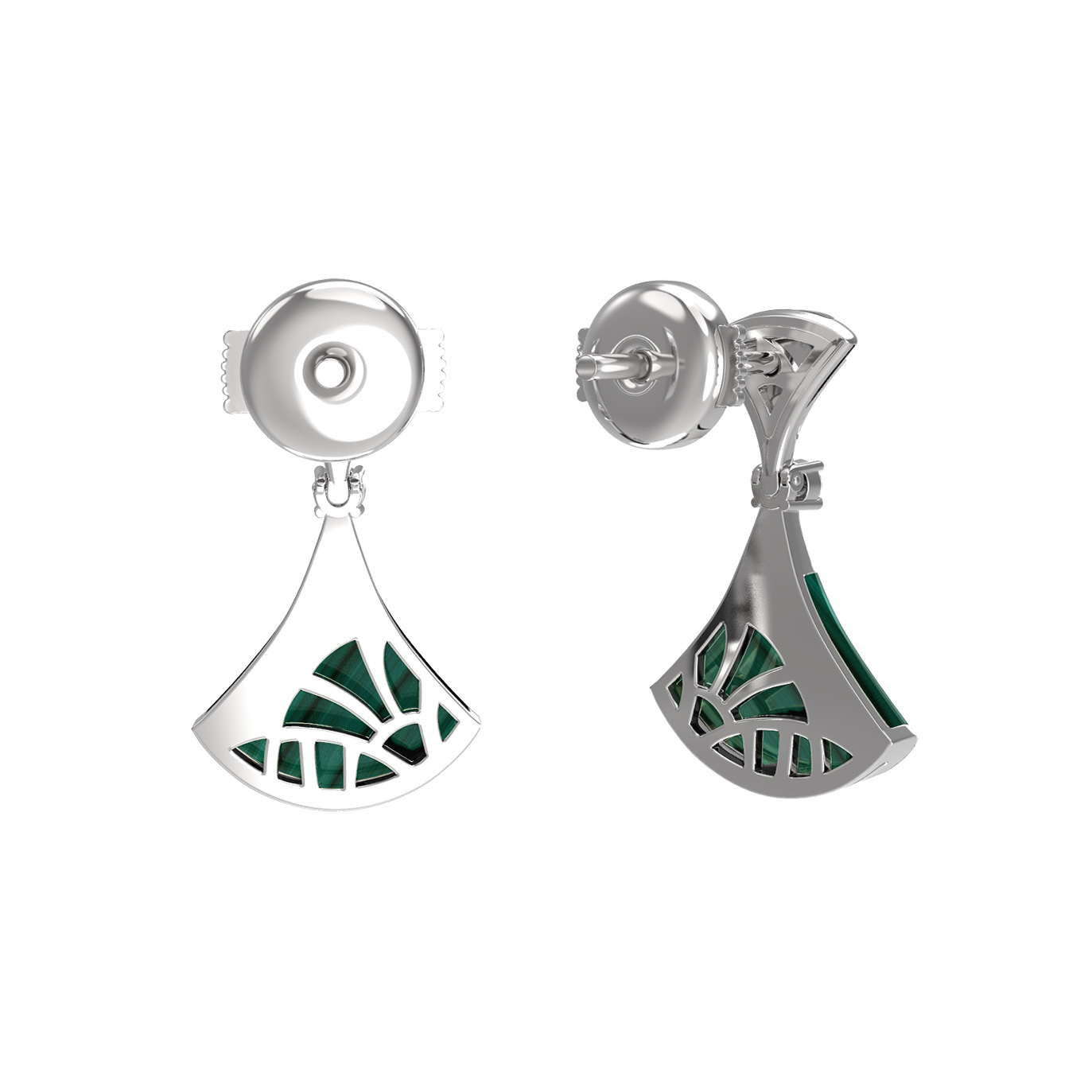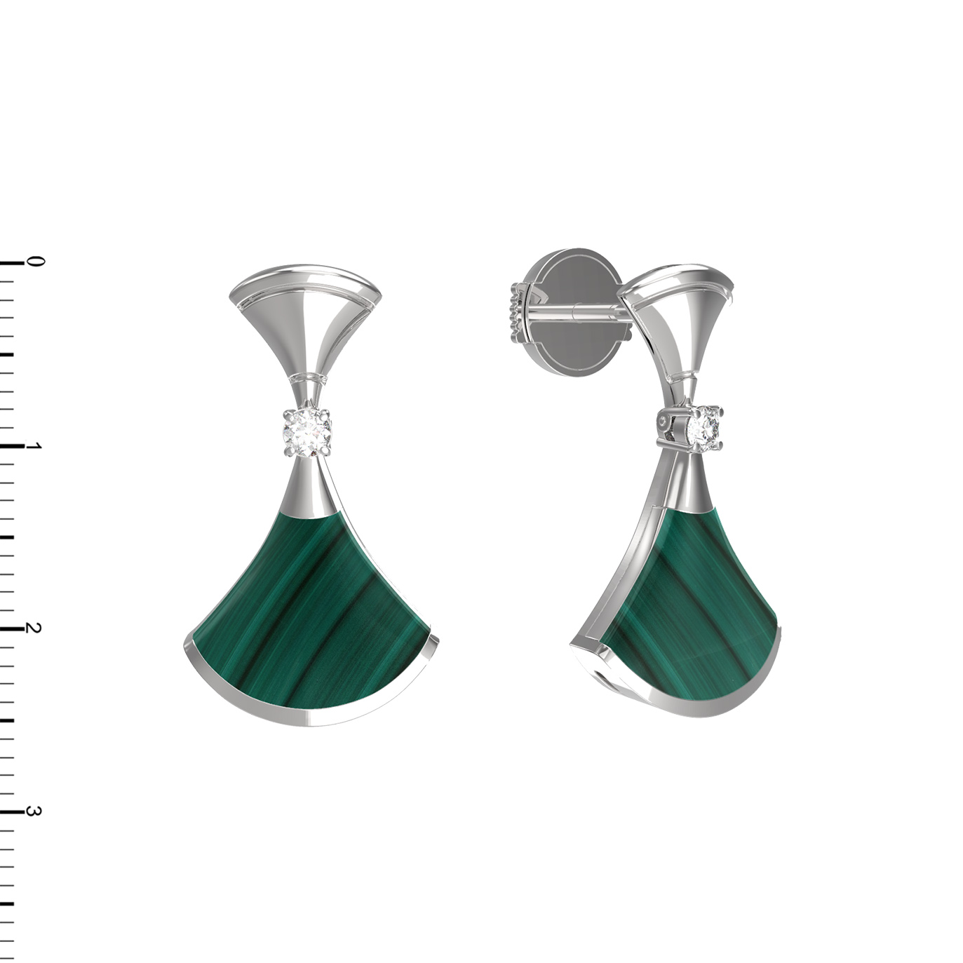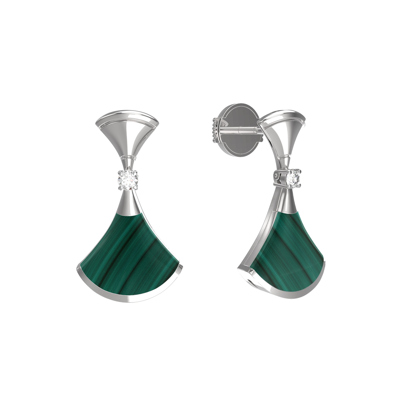 Серьги из белого золота c бриллиантами и малахитом