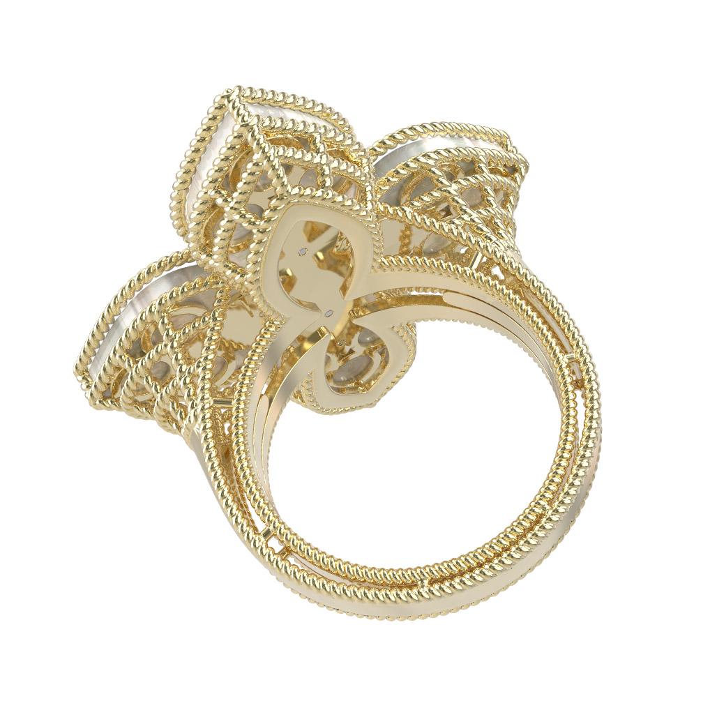 Кольцо из лимонного золота c бриллиантами и перламутром