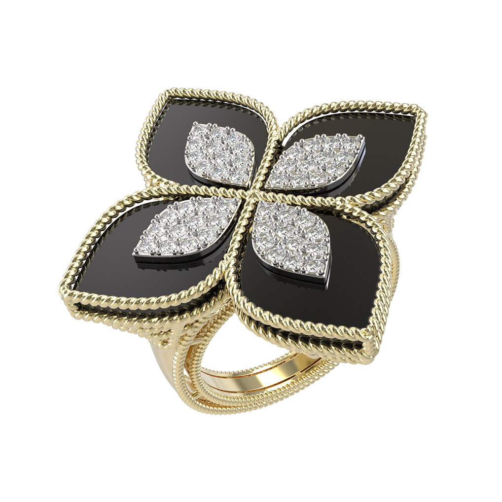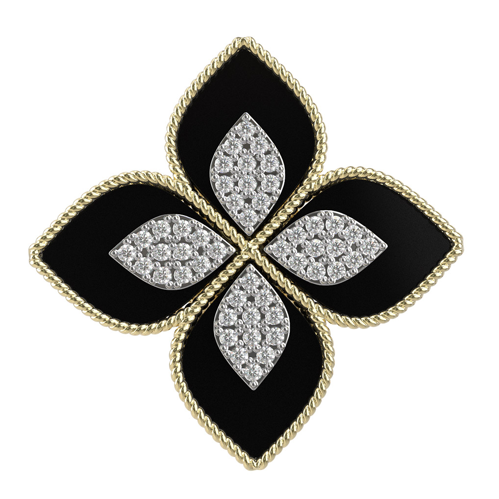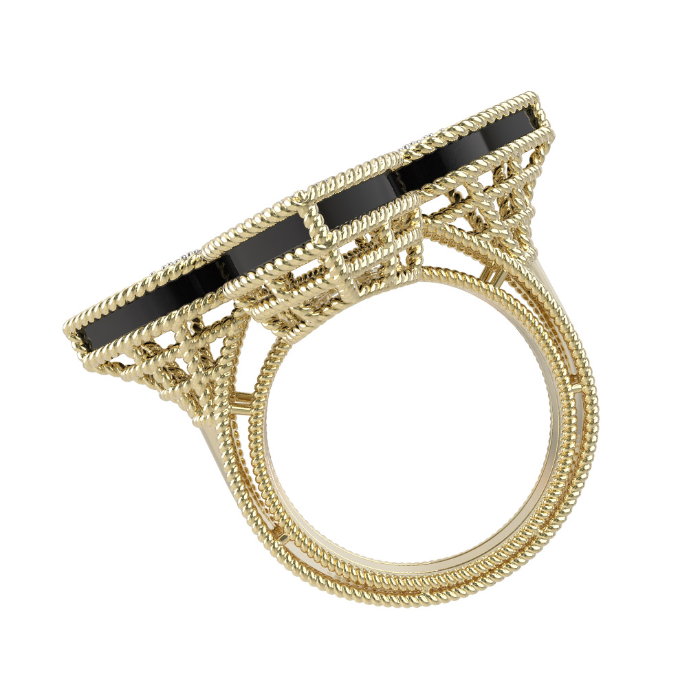 Кольцо из лимонного золота c бриллиантами и ониксом