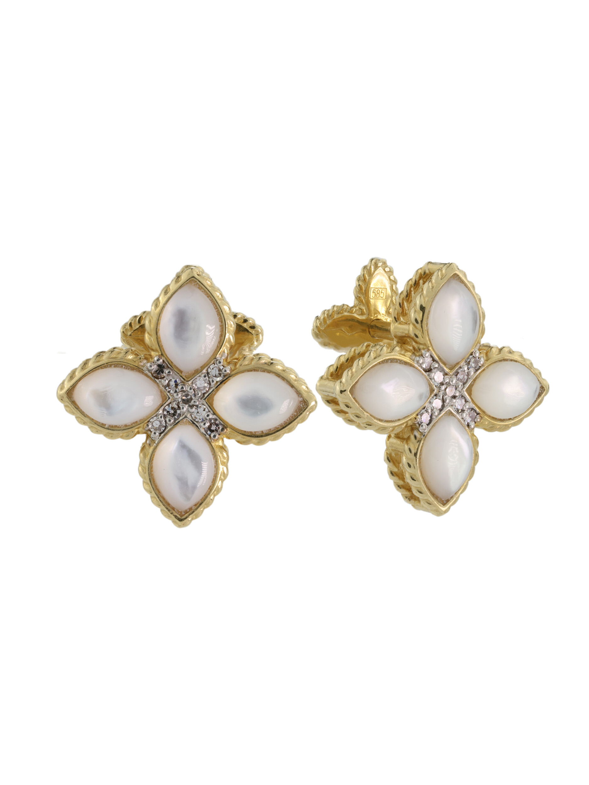 Серьги из лимонного золота c бриллиантами и перламутром