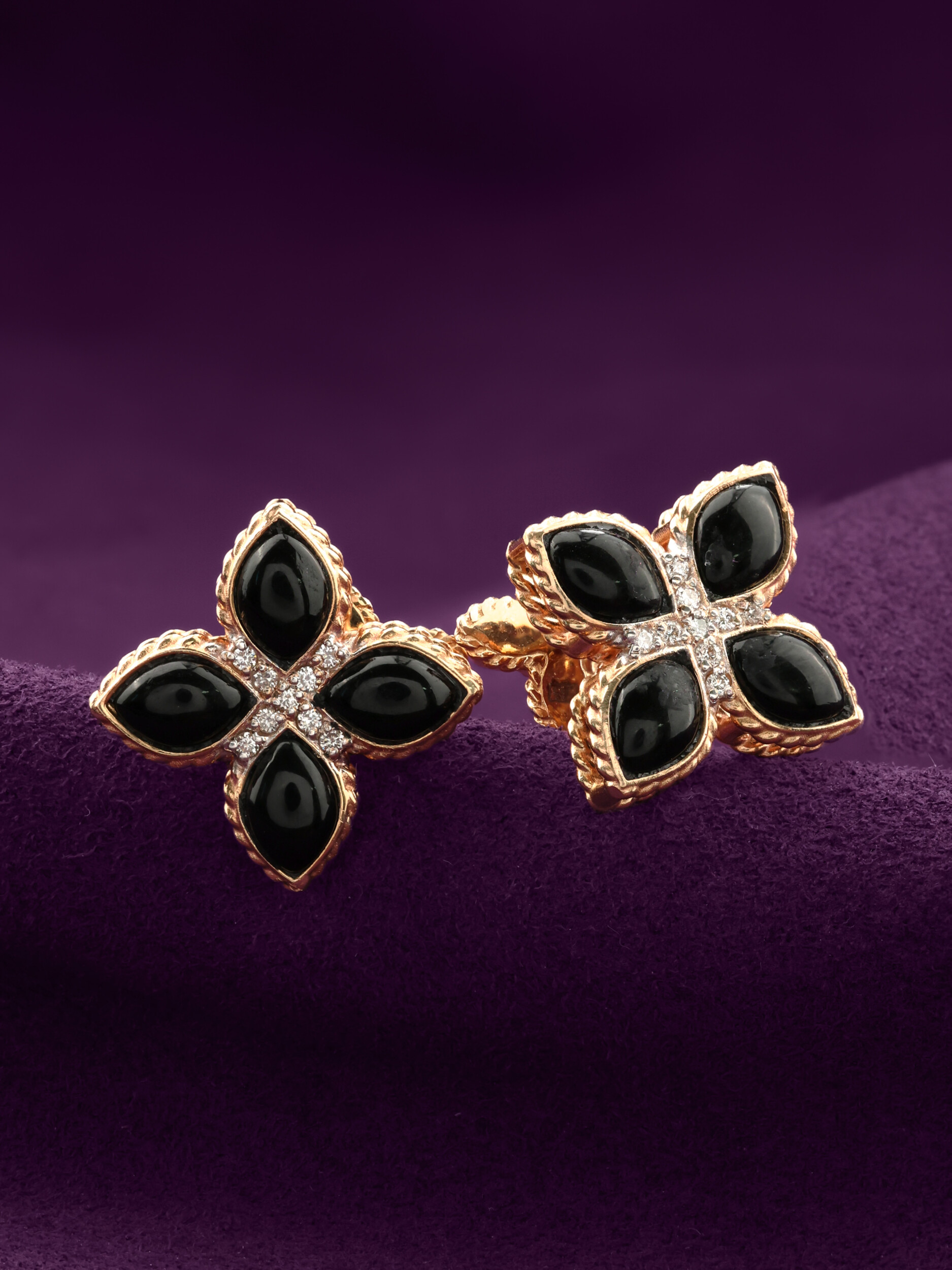 Серьги из золота c бриллиантами и ониксом