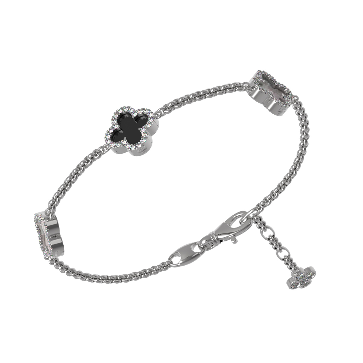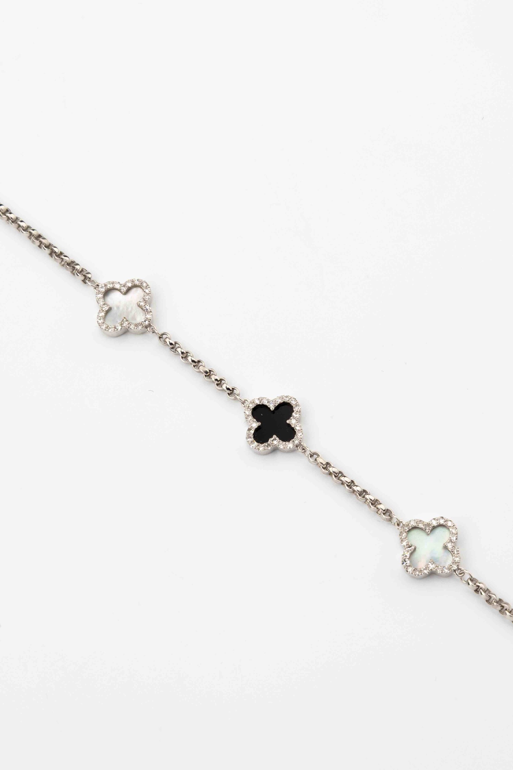 Браслет из белого золота c бриллиантами, ониксом и перламутром