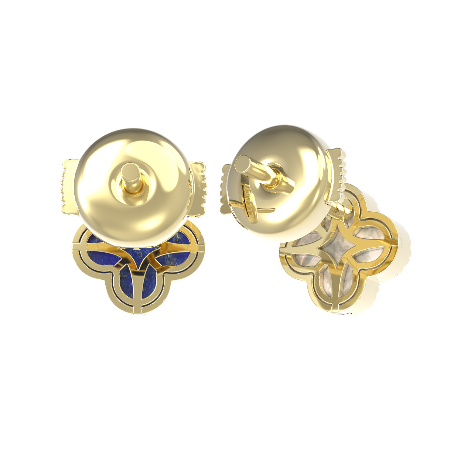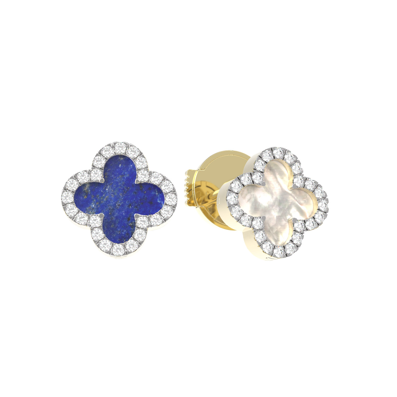 Серьги из лимонного золота c бриллиантами, лазуритом и перламутром