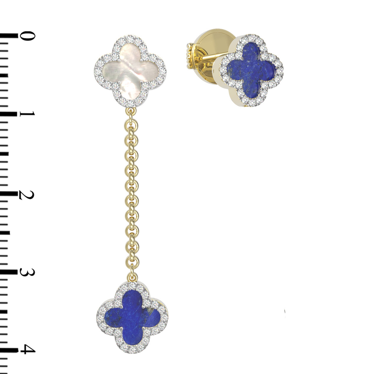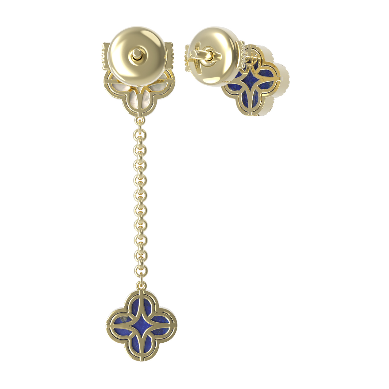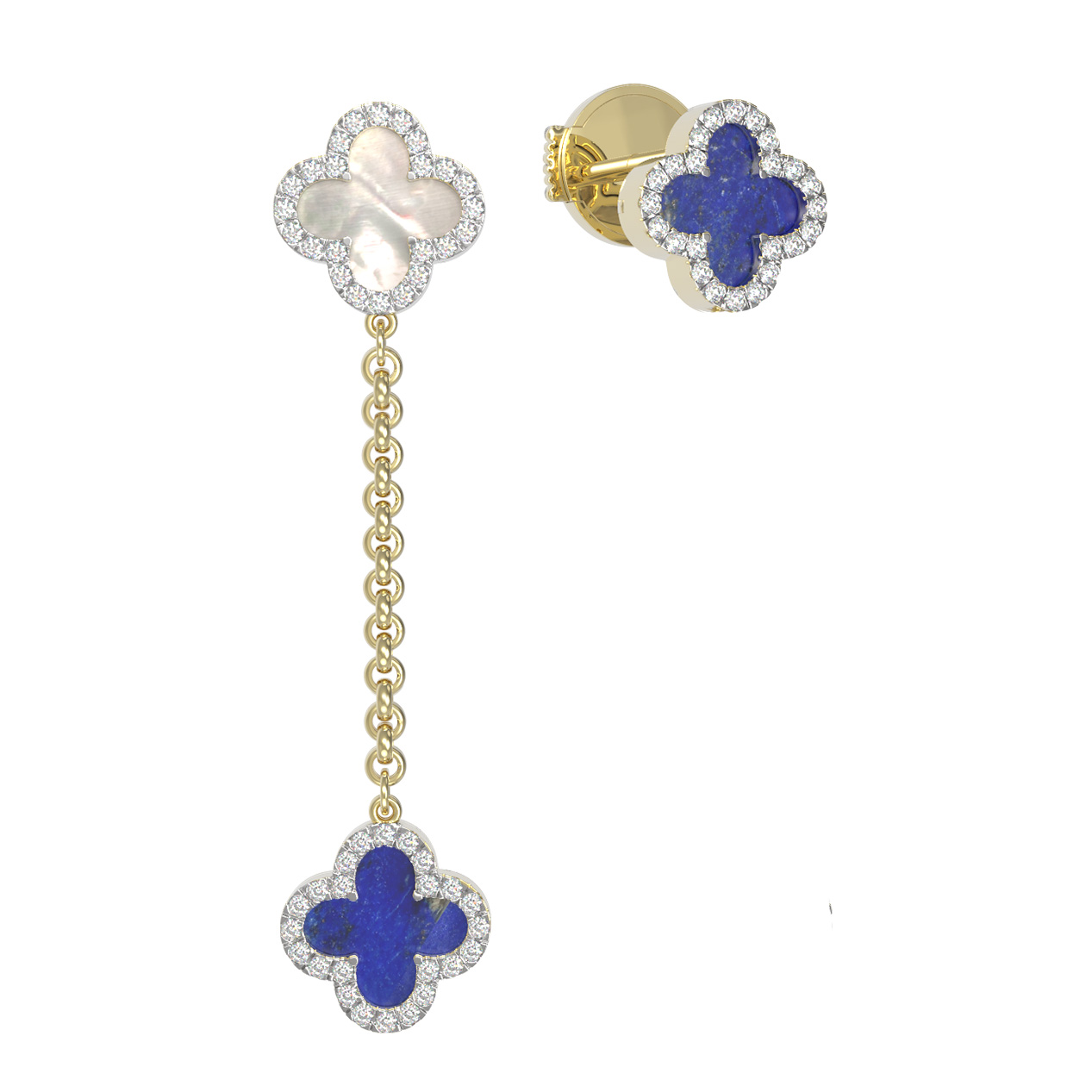 Серьги из лимонного золота c бриллиантами, лазуритом и перламутром
