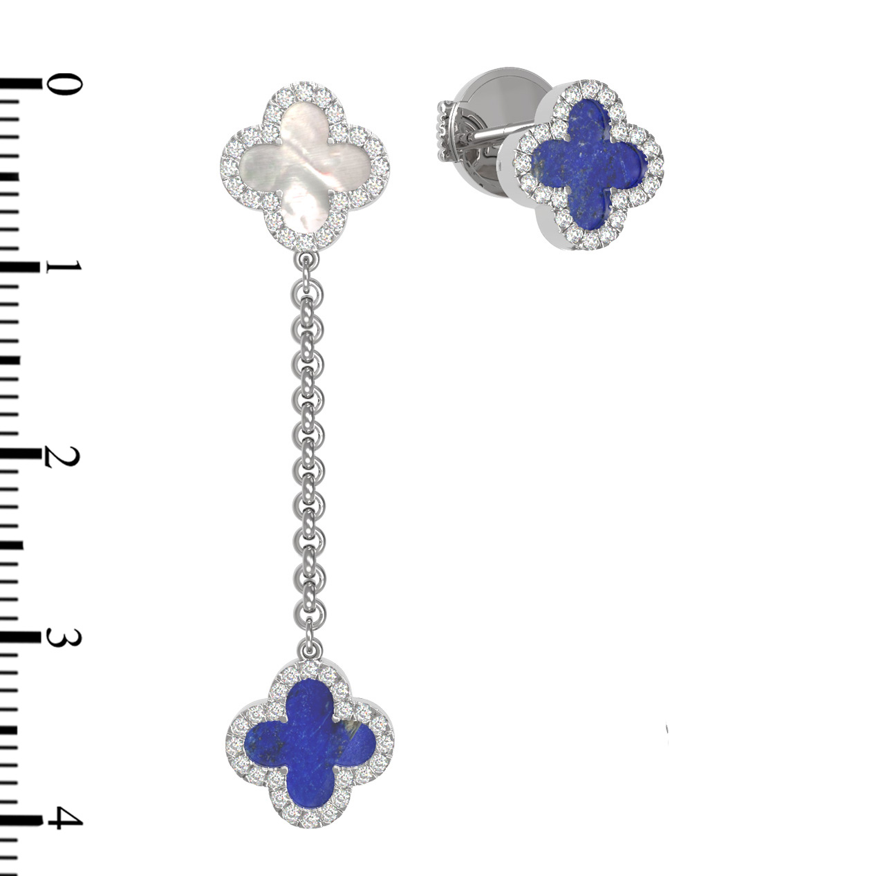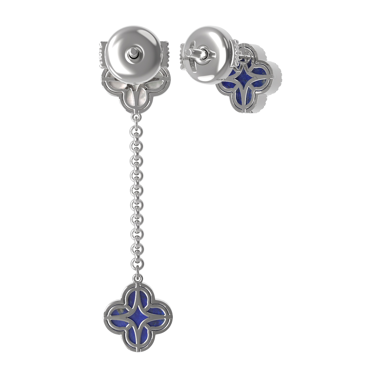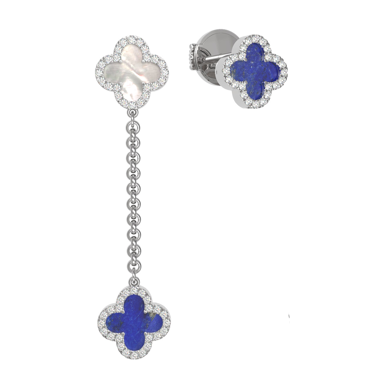 Серьги из белого золота c бриллиантами, лазуритом и перламутром