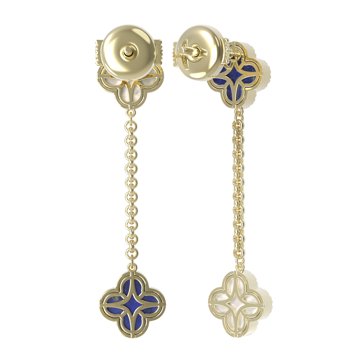Серьги из лимонного золота c бриллиантами, лазуритом и перламутром