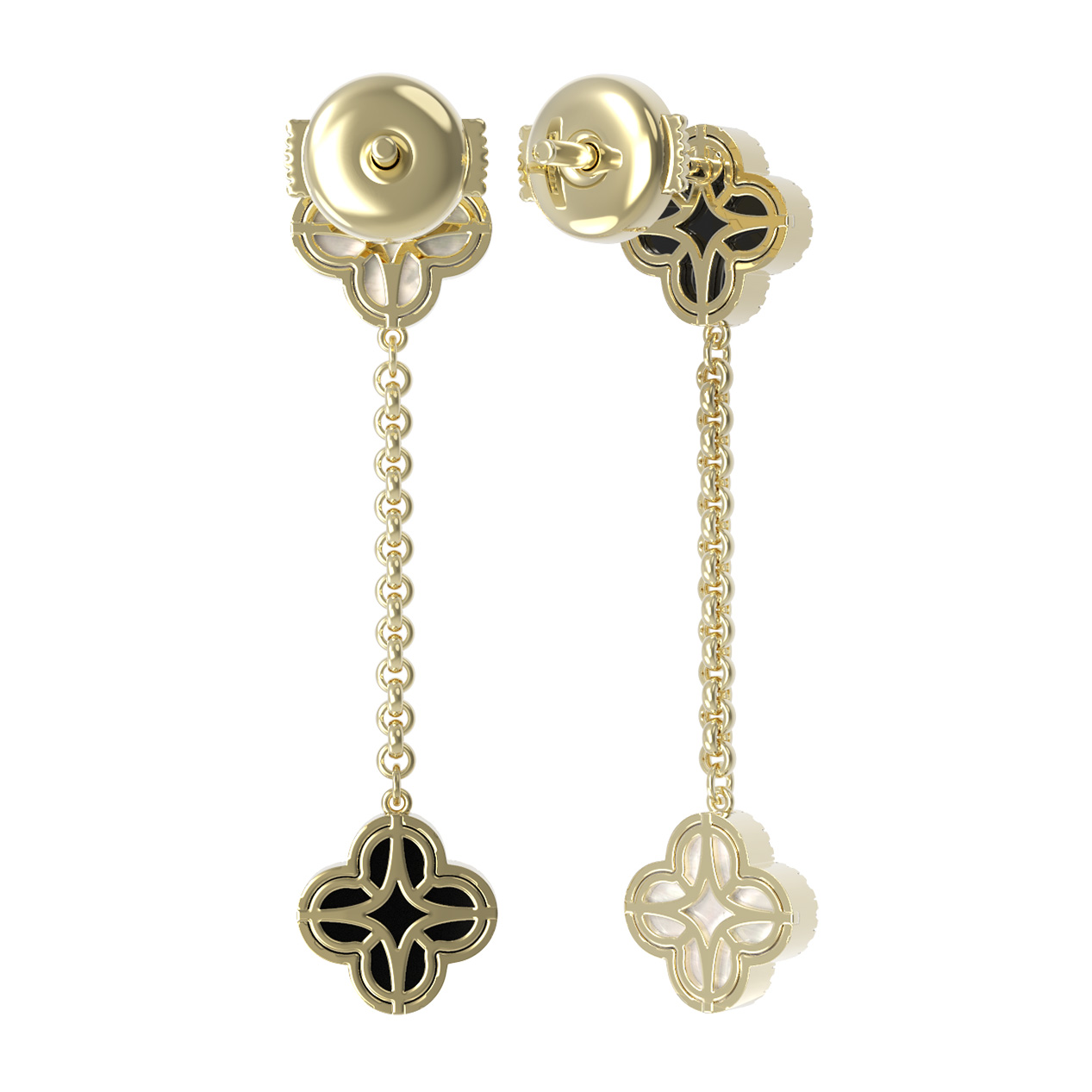 Серьги из лимонного золота c бриллиантами, ониксом и перламутром